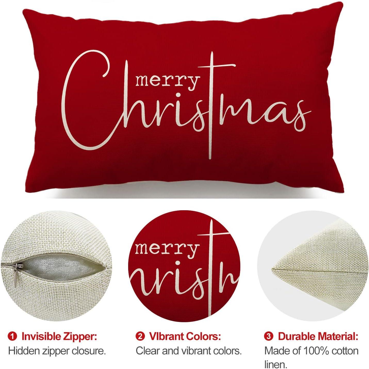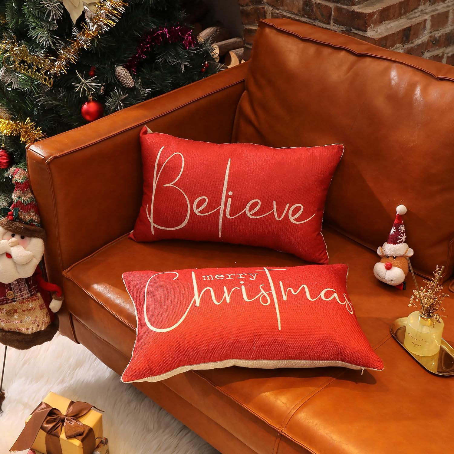 Christmas Throw Pillow Covers 12×20 Inch Set of 2 Merry Christmas Farmhouse Decorations Believe Holiday Decor Throw Cushion Case for Home Couch(B1-1)