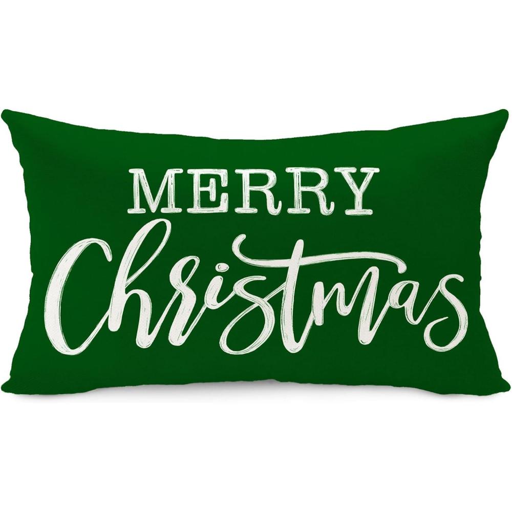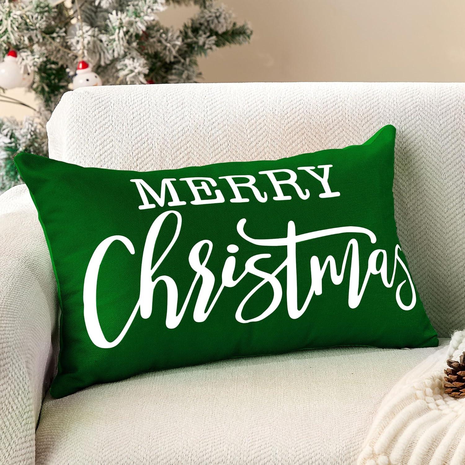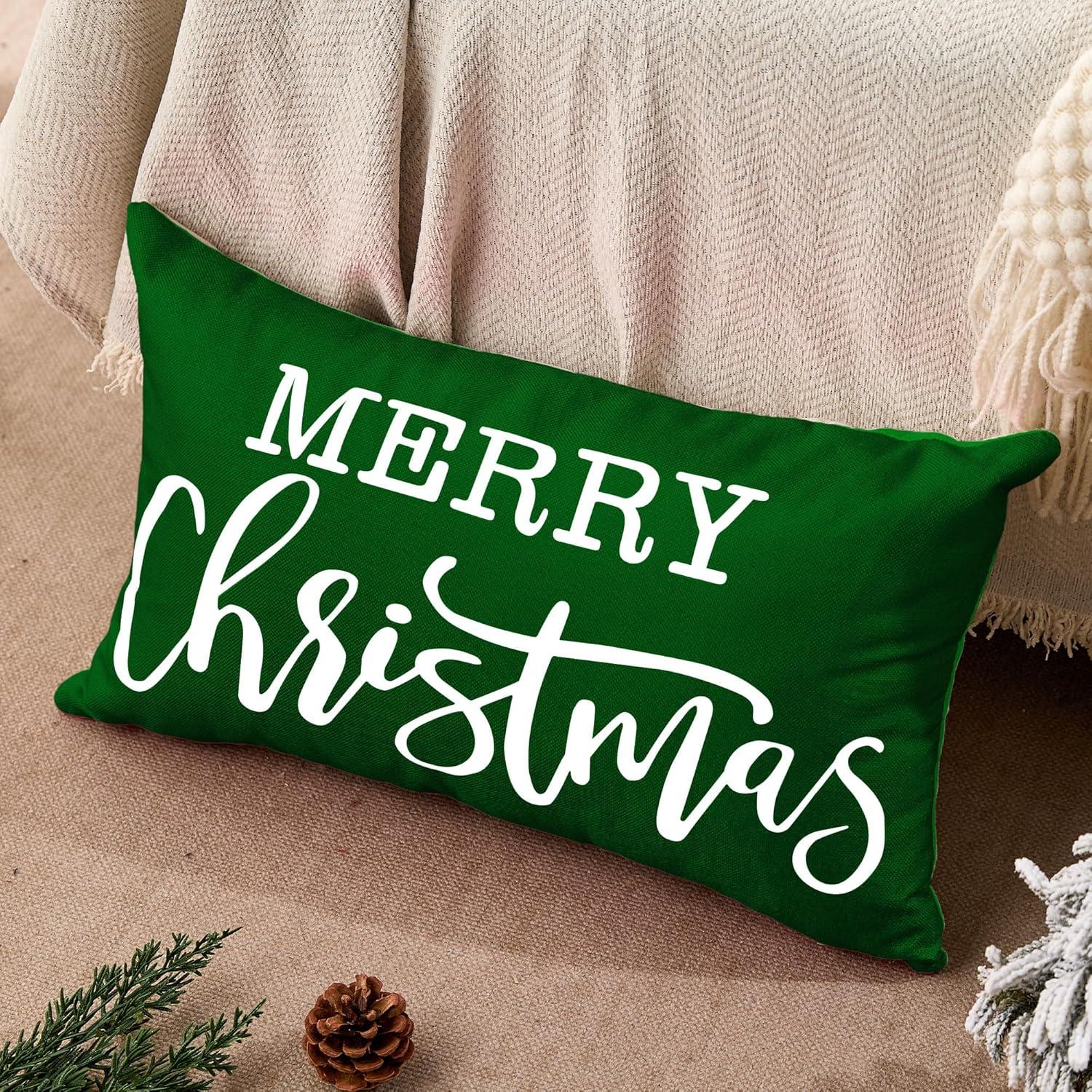 DFXSZ Christmas Pillow Cover 12×20 Merry Christmas Decor Red Throw Lumbar Pillow Cover Decorations Christmas Tree Holiday Decor Case for Home Couch YZT102A12(Green)