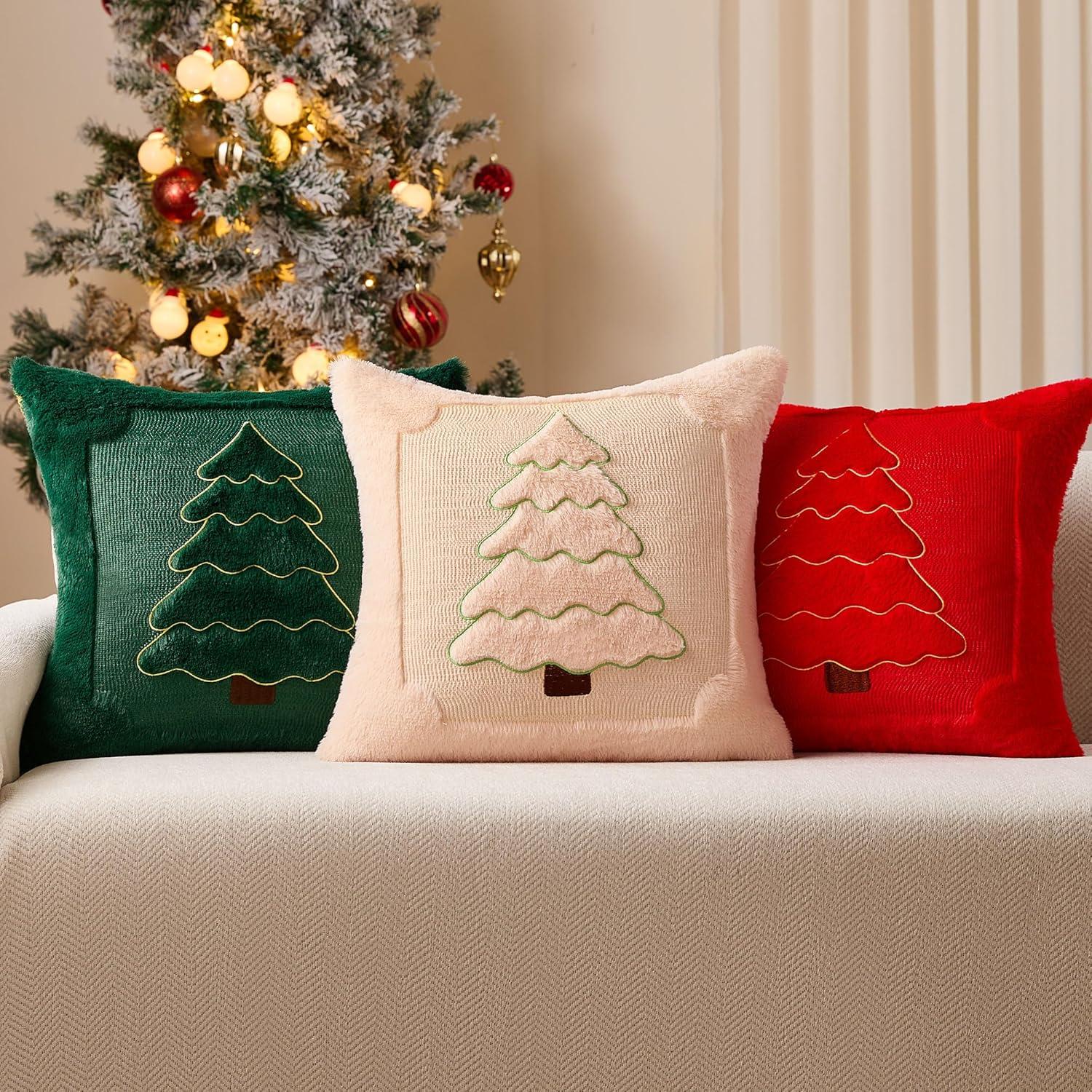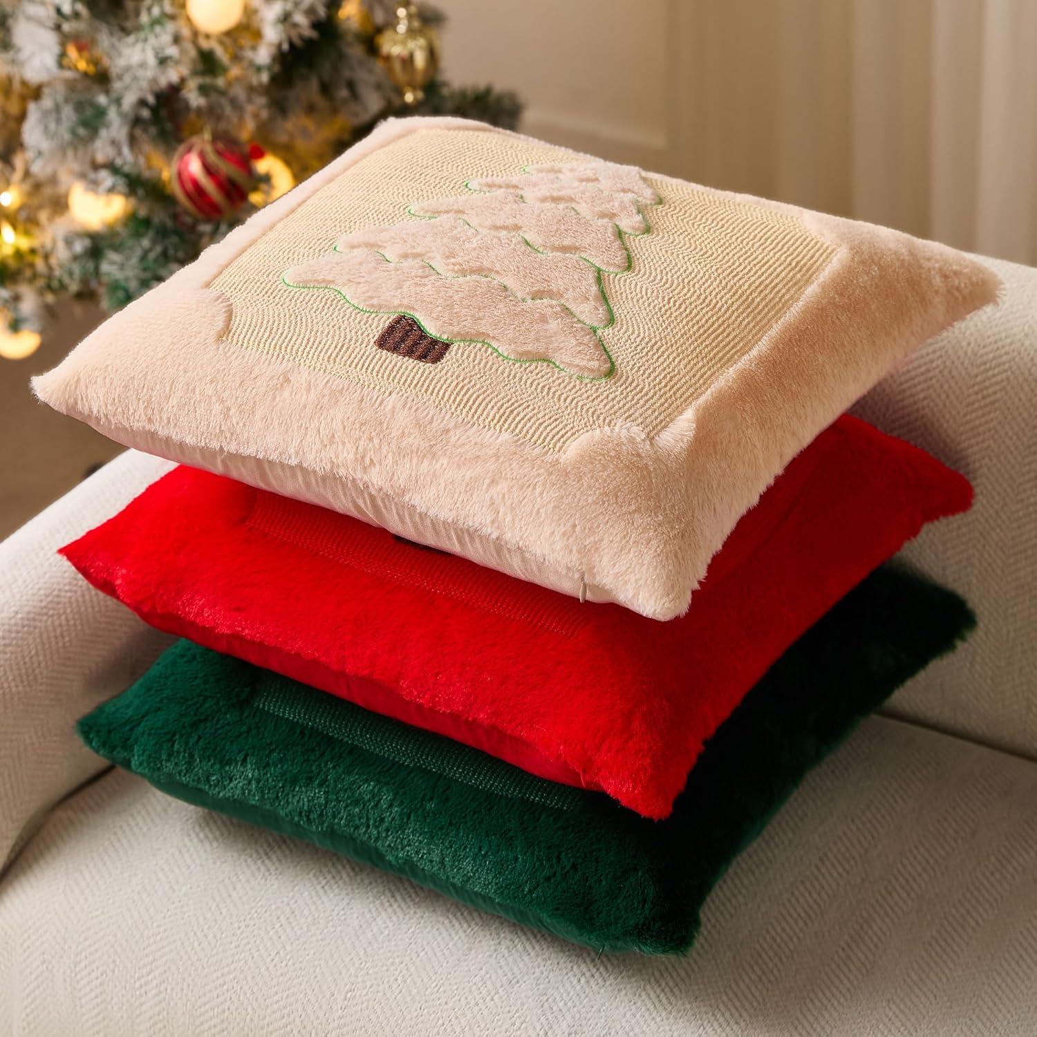 imageDFXSZ Christmas Pillow Covers 18x18 Green Big Christmas Tree Decoration Soft Plush Faux Fur Jacquard Throw Pillows for Bedroom Sofa Holiday Festivals Winter Home Decor PTK068A18Yellow Line Red Trees