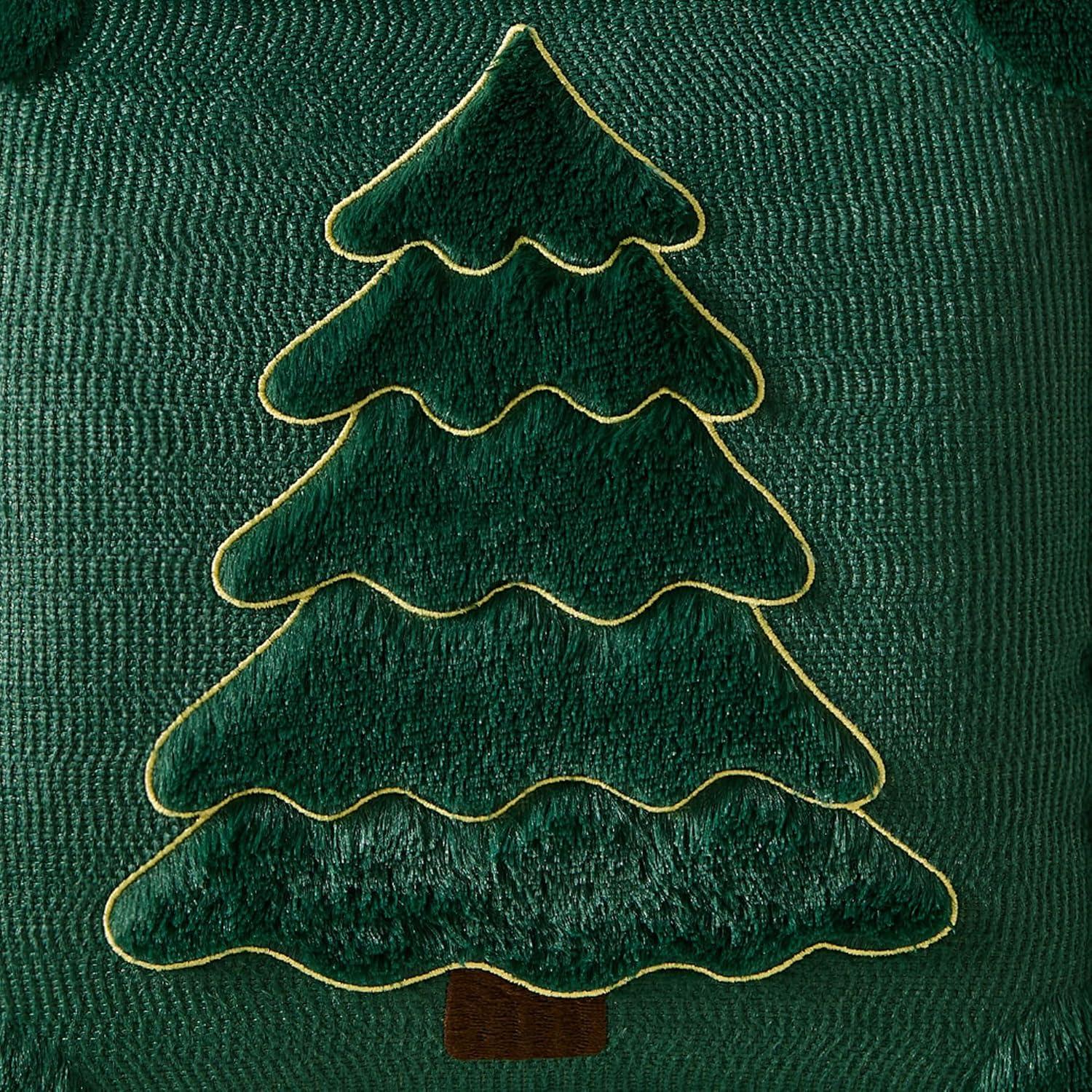 imageDFXSZ Christmas Pillow Covers 18x18 Green Big Christmas Tree Decoration Soft Plush Faux Fur Jacquard Throw Pillows for Bedroom Sofa Holiday Festivals Winter Home Decor PTK068A18Yellow Line Green Trees