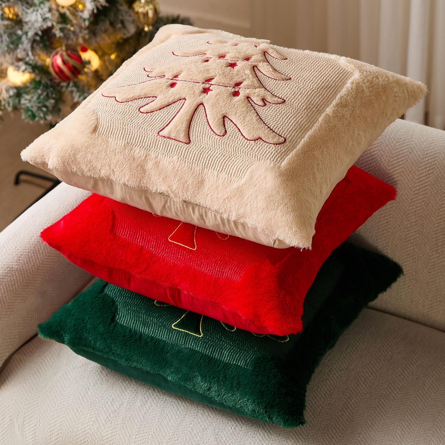 DFXSZ Christmas Pillow Covers 18×18 Green Big Christmas Tree Decoration Soft Plush Faux Fur Jacquard Throw Pillows for Bedroom Sofa Holiday Festivals Winter Home Decor PTK068A18(Yellow Star Red Tree)