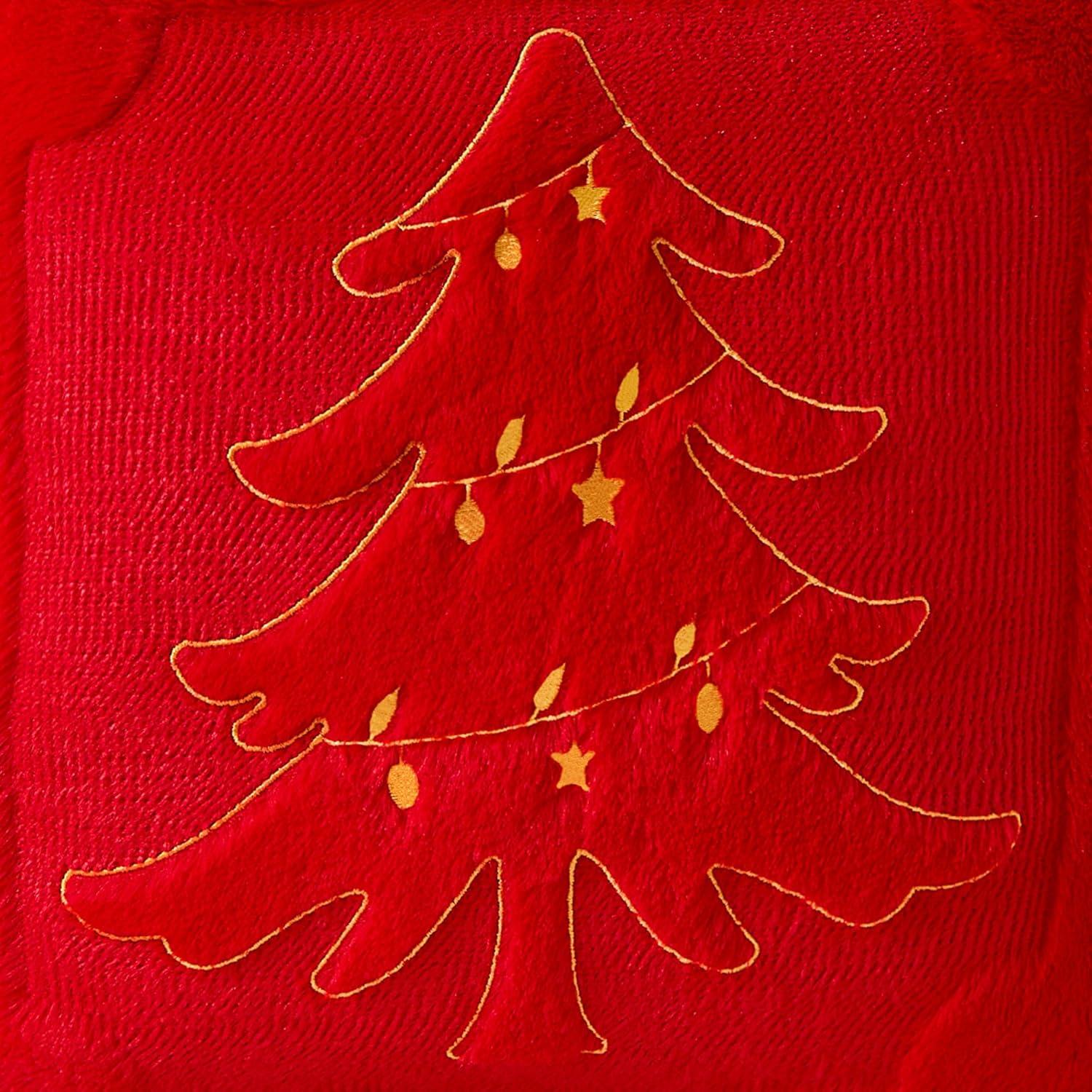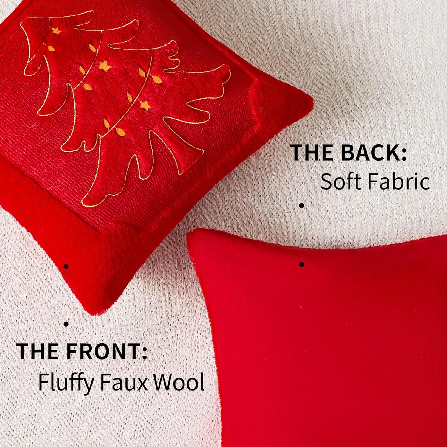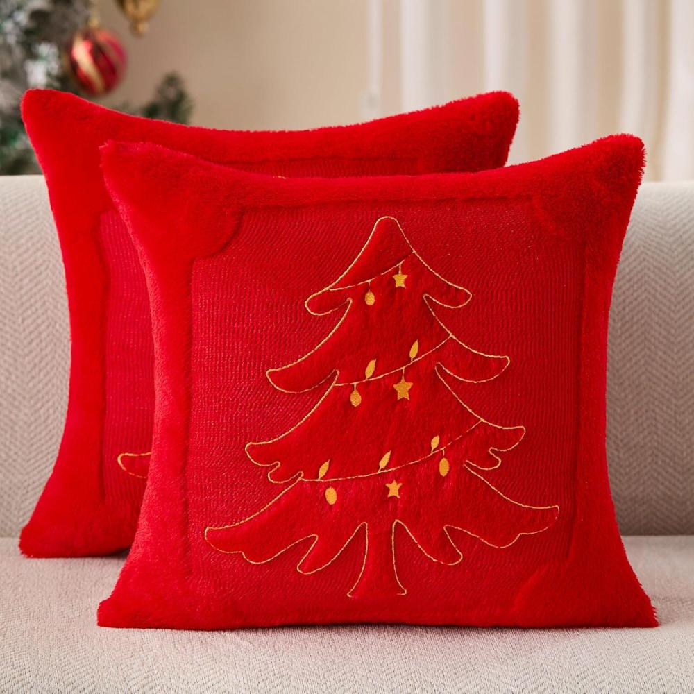 imageDFXSZ Christmas Pillow Covers 18x18 Green Big Christmas Tree Decoration Soft Plush Faux Fur Jacquard Throw Pillows for Bedroom Sofa Holiday Festivals Winter Home Decor PTK068A18Yellow Star Light Red Tree