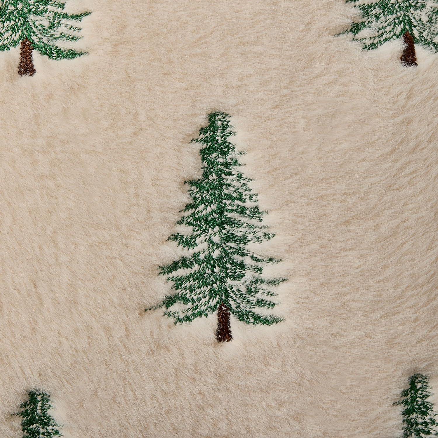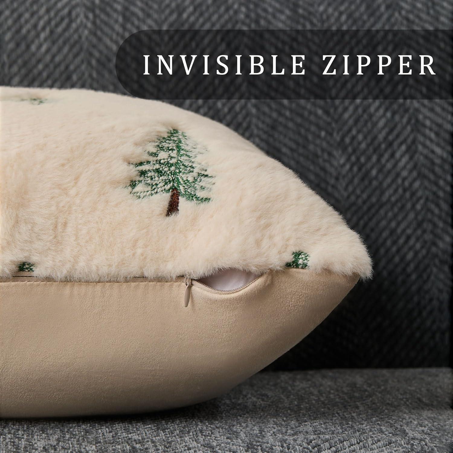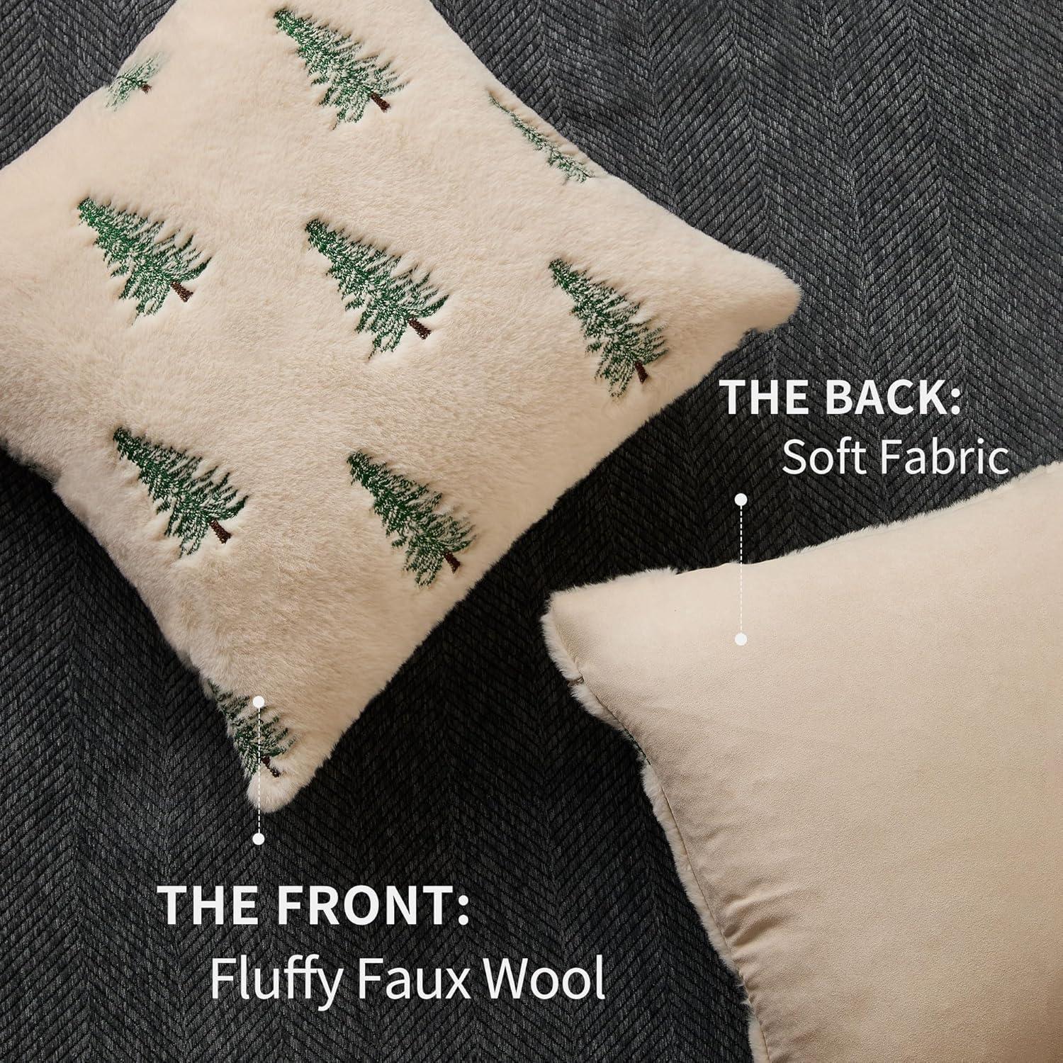 DFXSZ Christmas Pillow Covers 18x18 inch Set of 2 Green Embroidered Christmas Tree Decoration Beige Soft Plush Faux Fur Jacquard Throw Pillows for Bedroom Sofa Holiday Winter Home Decor PTK071C18(Beige Green)