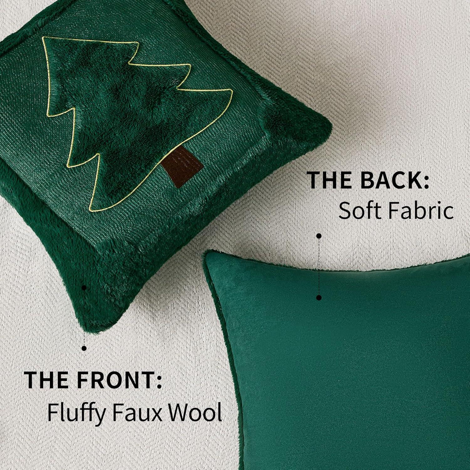 DFXSZ Christmas Pillow Covers 18×18 Red StarLanterns Beige Christmas Tree Decoration Soft Plush Faux Fur Jacquard Throw Pillows for Bedroom Sofa Holiday Festivals Winter Home Decor PTK066C18(Yellow Line Green Trees)