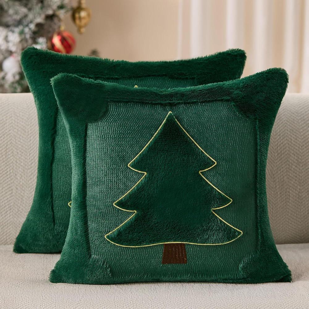 imageDFXSZ Christmas Pillow Covers 18x18 Red StarLanterns Beige Christmas Tree Decoration Soft Plush Faux Fur Jacquard Throw Pillows for Bedroom Sofa Holiday Festivals Winter Home Decor PTK066C18Yellow Line Green Trees