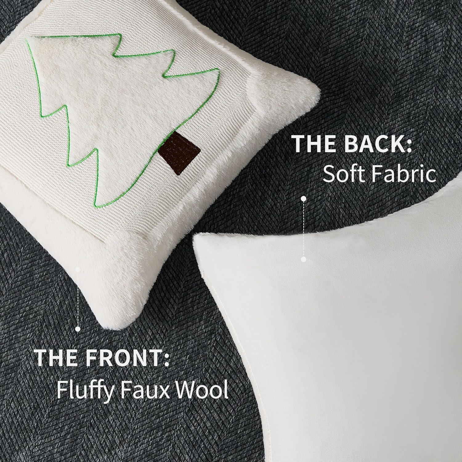 DFXSZ Christmas Pillow Covers 18x18 Red StarLanterns Beige Christmas Tree Decoration Soft Plush Faux Fur Jacquard Throw Pillows for Bedroom Sofa Holiday Festivals Winter Home Decor PTK066C18(Yellow Star Creamwhite Tree)