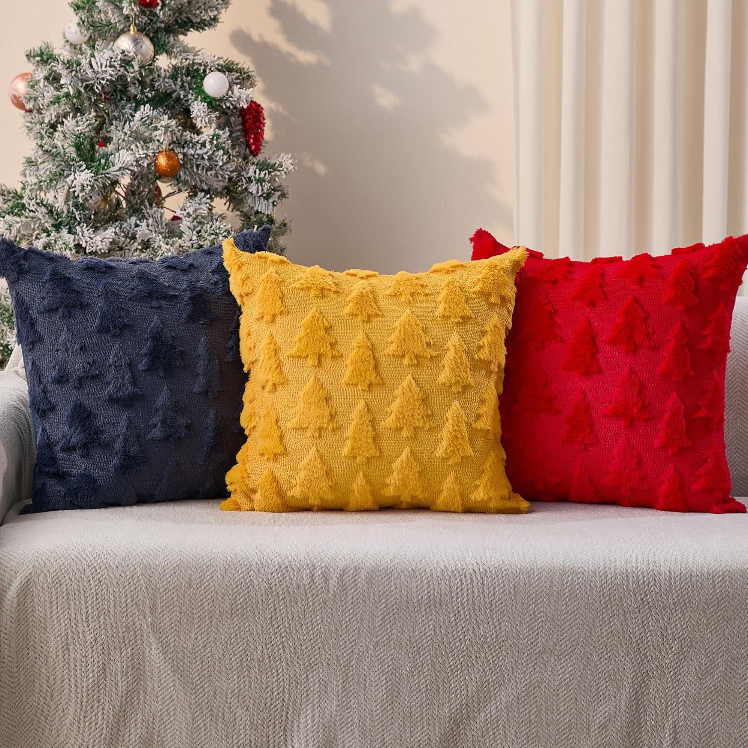 imageDFXSZ Christmas Tree Pillow Covers 18x18 inch Set of 2 Christmas Decoration Green Soft Plush Faux Fur Jacquard Throw Pillows for Bedroom Sofa Holiday Festivals Winter Home Decor PTK006A18Golden