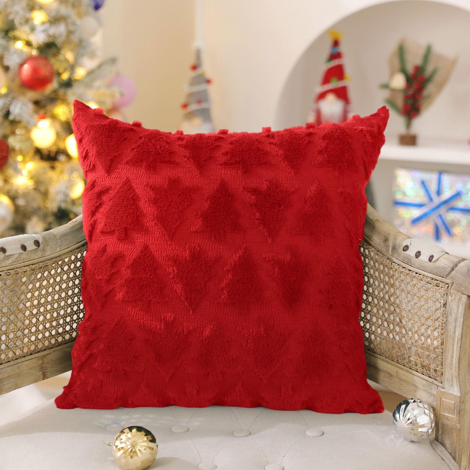 DFXSZ Christmas Tree Pillow Covers 18x18 inch Set of 2 Christmas Decoration Green Soft Plush Faux Fur Jacquard Throw Pillows for Bedroom Sofa Holiday Festivals Winter Home Decor PTK006A18(Red Christmas Tree)