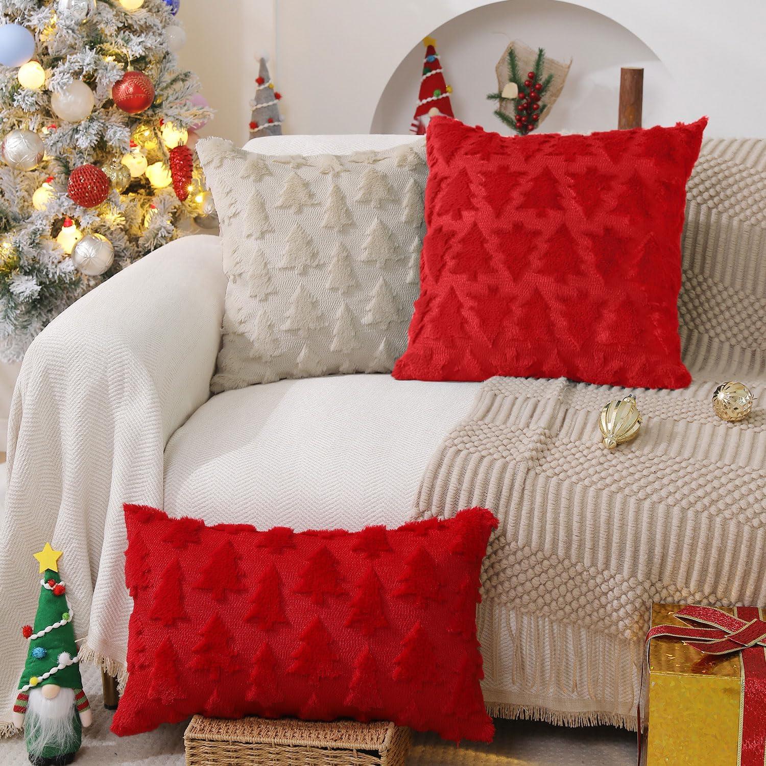 imageDFXSZ Christmas Tree Pillow Covers 18x18 inch Set of 2 Christmas Decoration Green Soft Plush Faux Fur Jacquard Throw Pillows for Bedroom Sofa Holiday Festivals Winter Home Decor PTK006A18Red