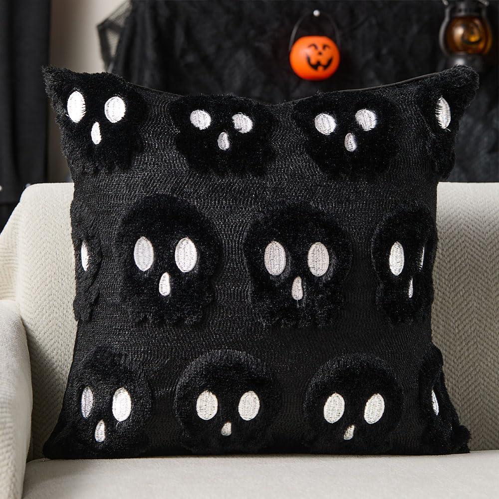 DFXSZ Halloween Pillow Covers 16x16 inch Set of 2 Beige Skeletont Halloween Decorations Soft Plush Faux Fur Wool Couch Cushion Case for Chair Sofa Bedroom Living Room Home Decor PTK04C16(Black)