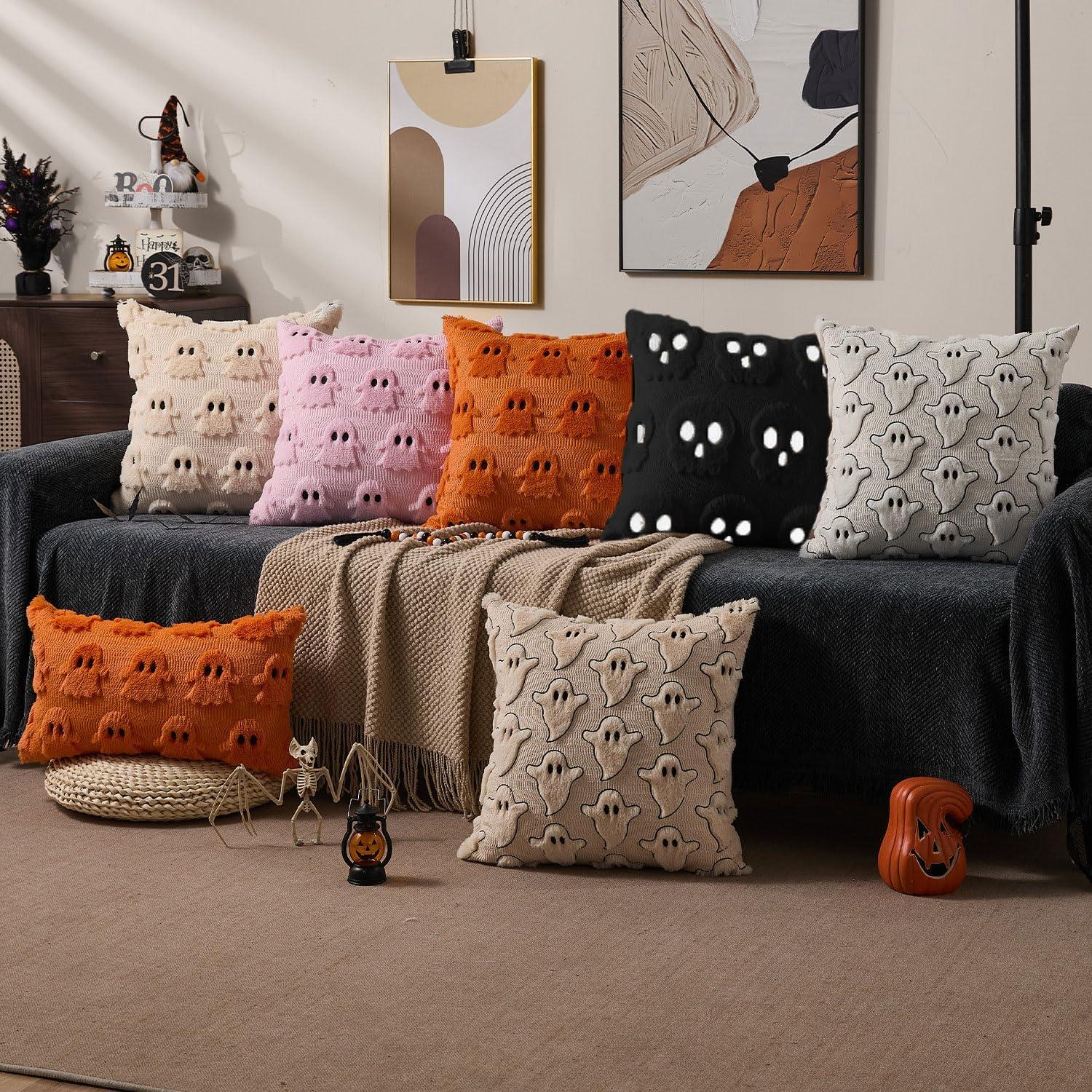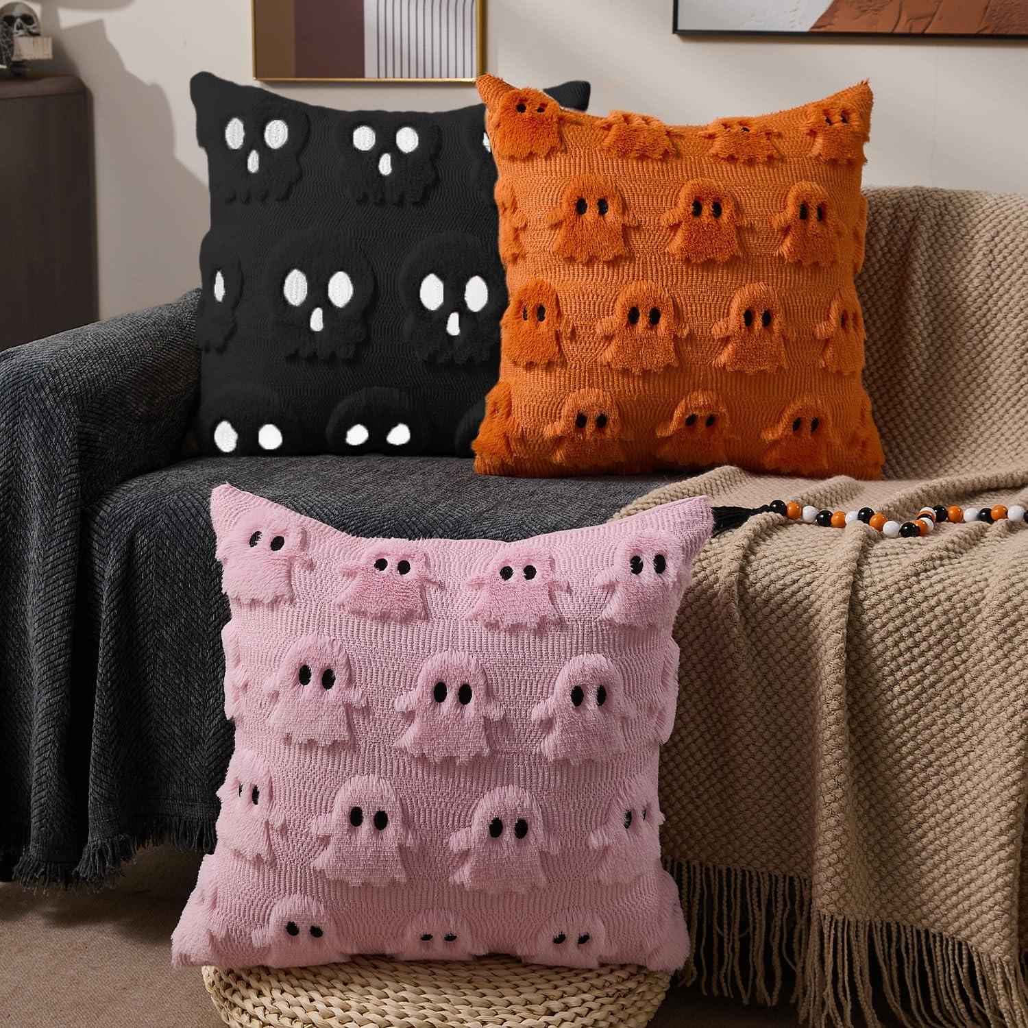 imageDFXSZ Halloween Pillow Covers 16x16 inch Set of 2 Beige Skeletont Halloween Decorations Soft Plush Faux Fur Wool Couch Cushion Case for Chair Sofa Bedroom Living Room Home Decor PTK04C16Beige Ghost