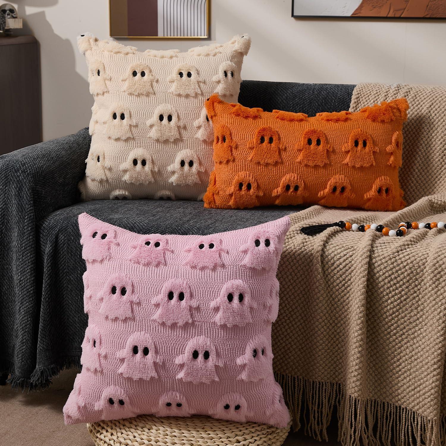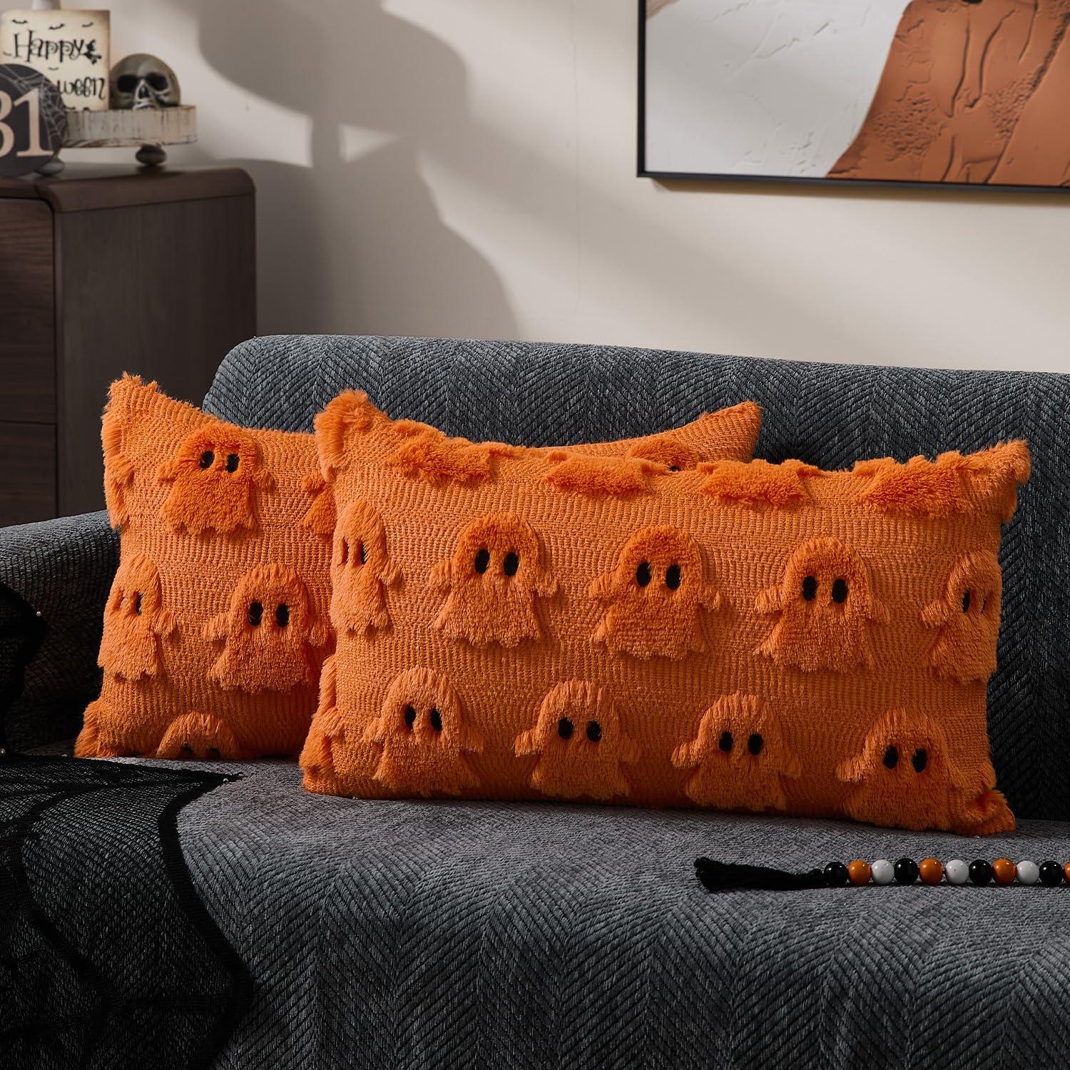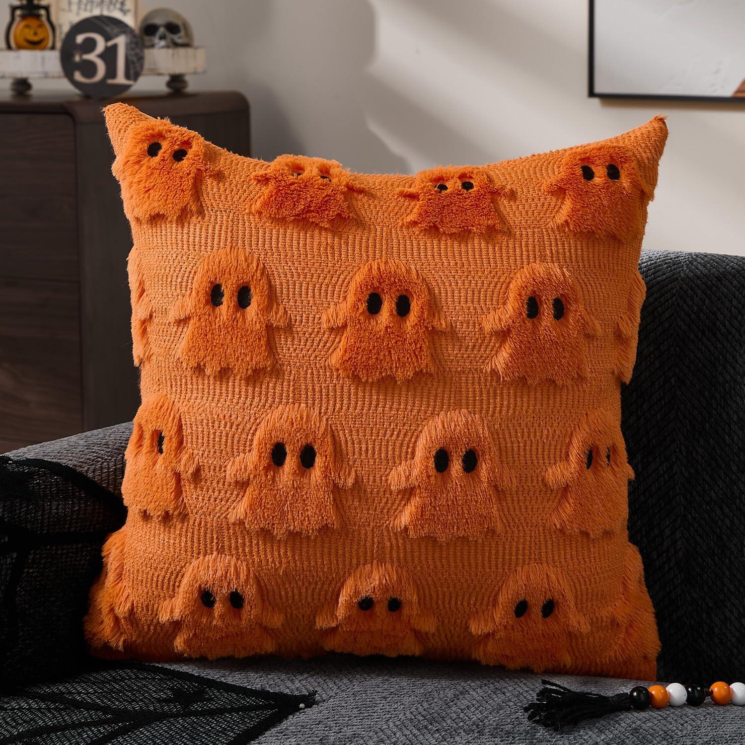 imageDFXSZ Halloween Pillow Covers 16x16 inch Set of 2 Beige Skeletont Halloween Decorations Soft Plush Faux Fur Wool Couch Cushion Case for Chair Sofa Bedroom Living Room Home Decor PTK04C16Orange Ghost
