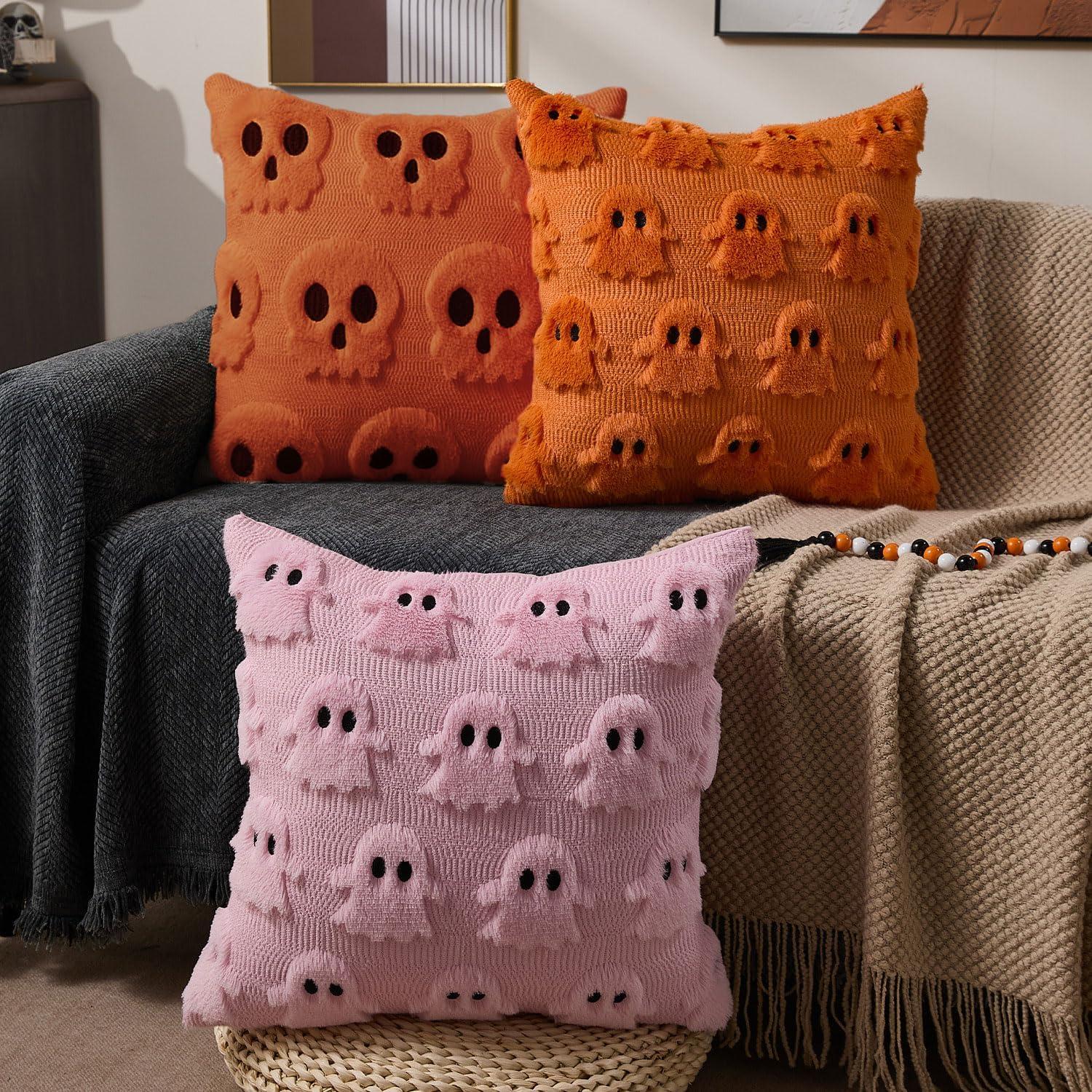 imageDFXSZ Halloween Pillow Covers 16x16 inch Set of 2 Beige Skeletont Halloween Decorations Soft Plush Faux Fur Wool Couch Cushion Case for Chair Sofa Bedroom Living Room Home Decor PTK04C16Orange Ghost
