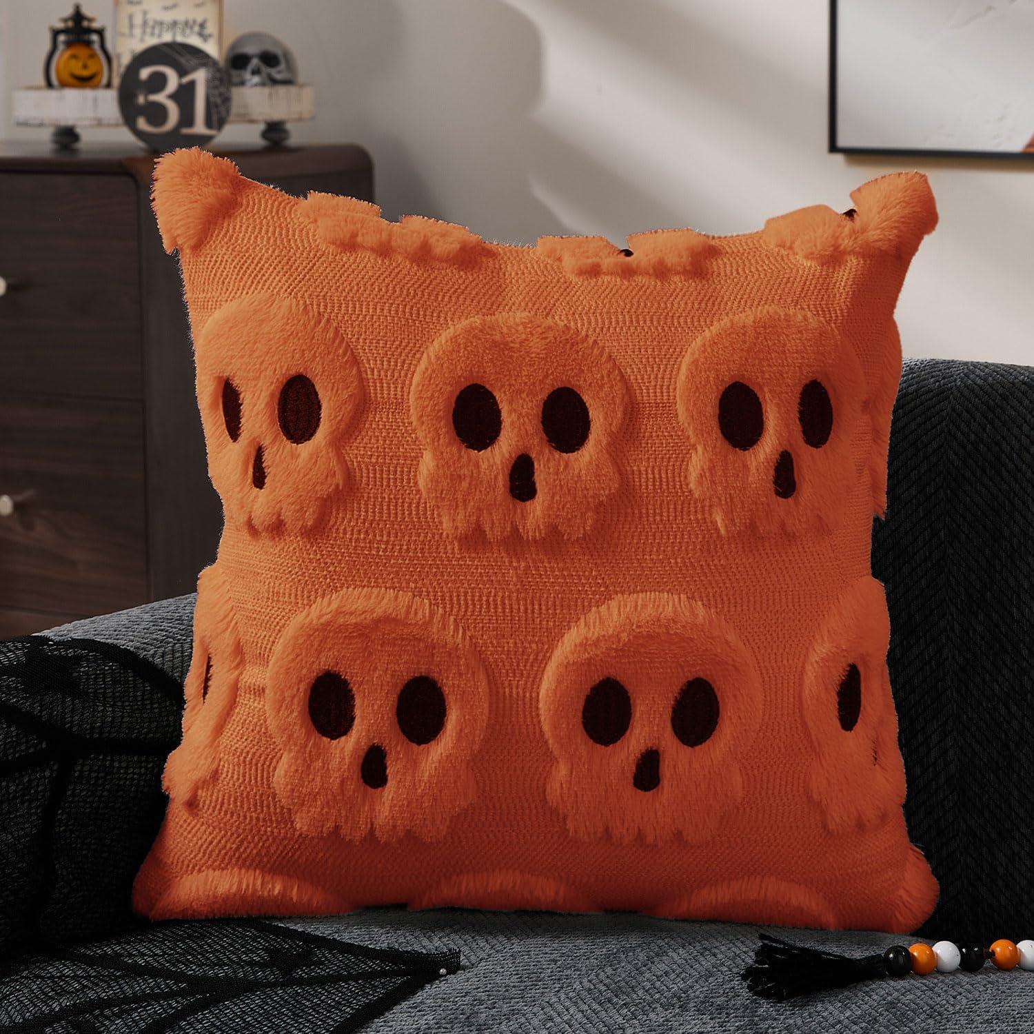 DFXSZ Halloween Pillow Covers 16x16 inch Set of 2 Beige Skeletont Halloween Decorations Soft Plush Faux Fur Wool Couch Cushion Case for Chair Sofa Bedroom Living Room Home Decor PTK04C16(Orange)