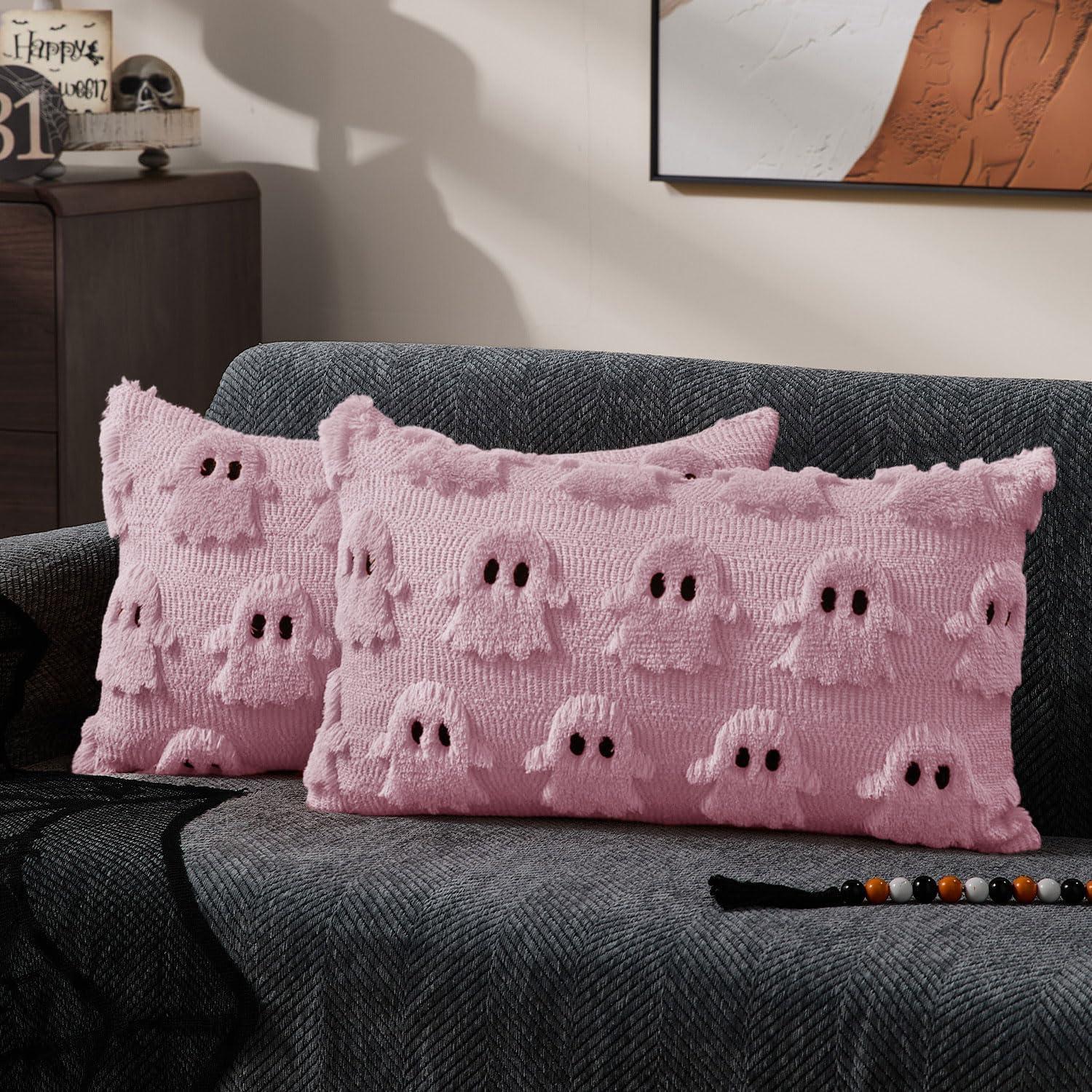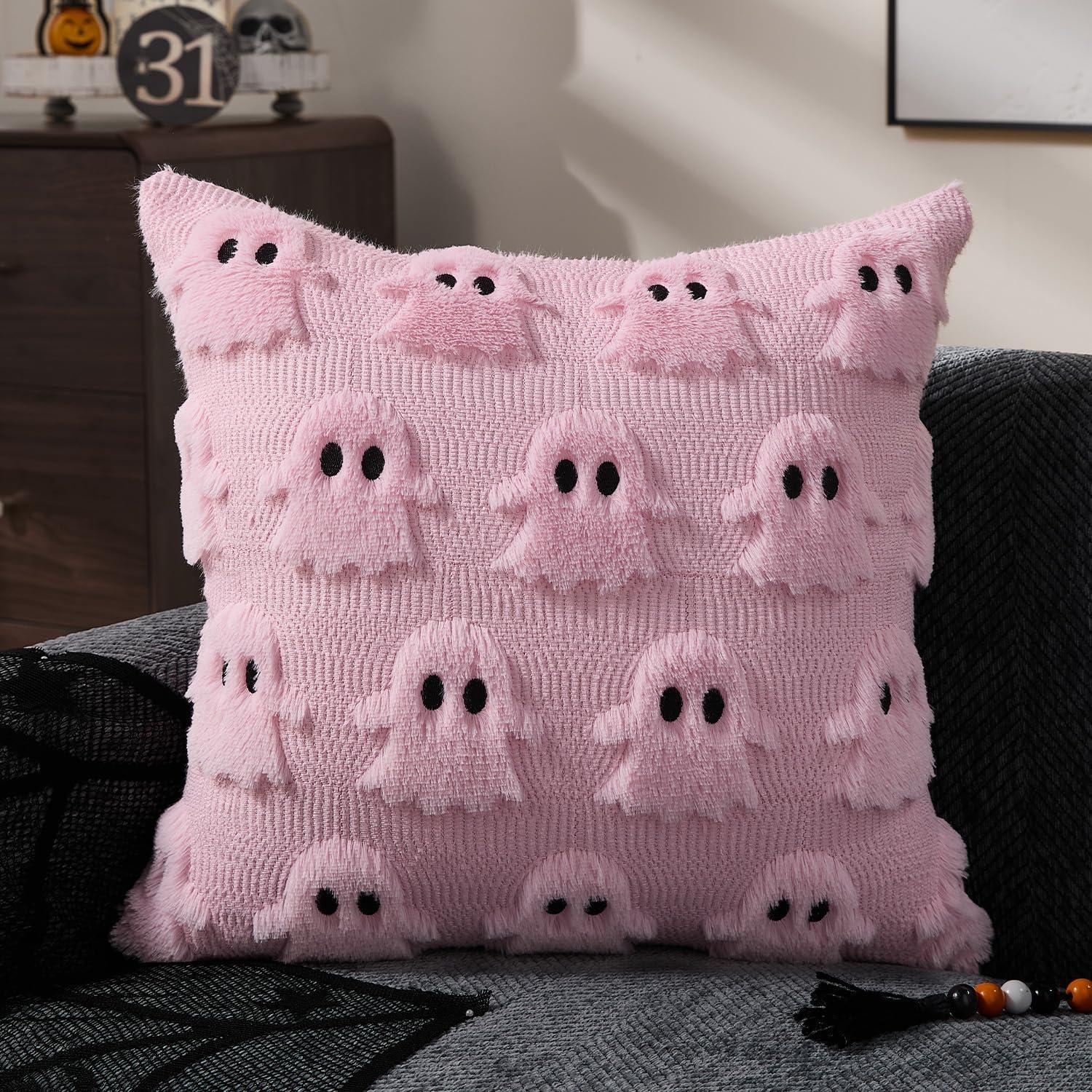imageDFXSZ Halloween Pillow Covers 16x16 inch Set of 2 Beige Skeletont Halloween Decorations Soft Plush Faux Fur Wool Couch Cushion Case for Chair Sofa Bedroom Living Room Home Decor PTK04C16Pink Ghost