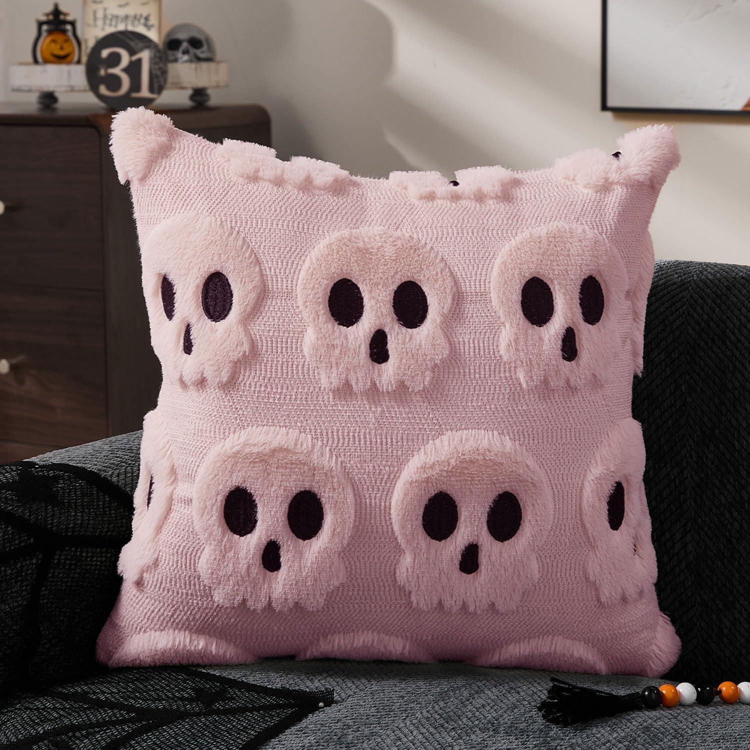 DFXSZ Halloween Pillow Covers 16x16 inch Set of 2 Beige Skeletont Halloween Decorations Soft Plush Faux Fur Wool Couch Cushion Case for Chair Sofa Bedroom Living Room Home Decor PTK04C16(Pink)
