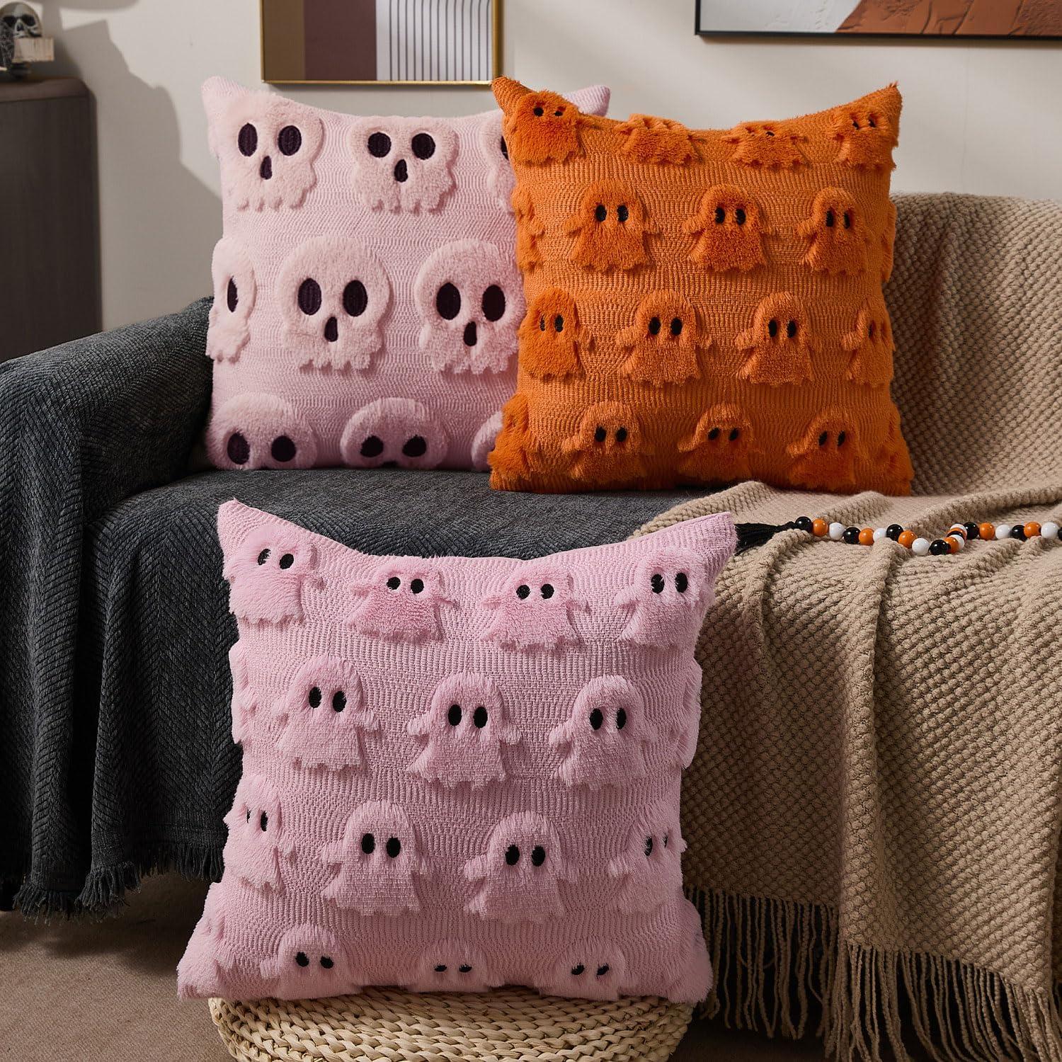 imageDFXSZ Halloween Pillow Covers 16x16 inch Set of 2 Beige Skeletont Halloween Decorations Soft Plush Faux Fur Wool Couch Cushion Case for Chair Sofa Bedroom Living Room Home Decor PTK04C16Pink Ghost