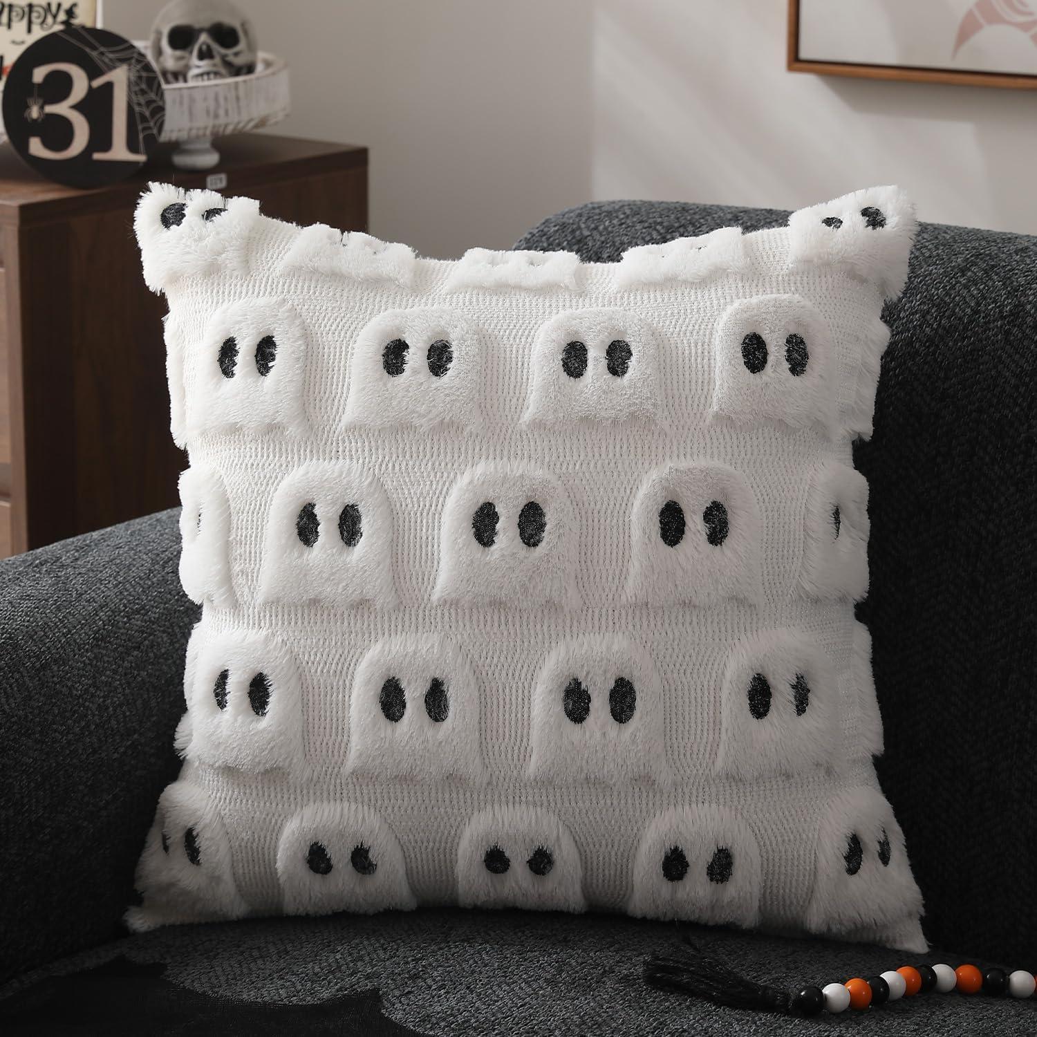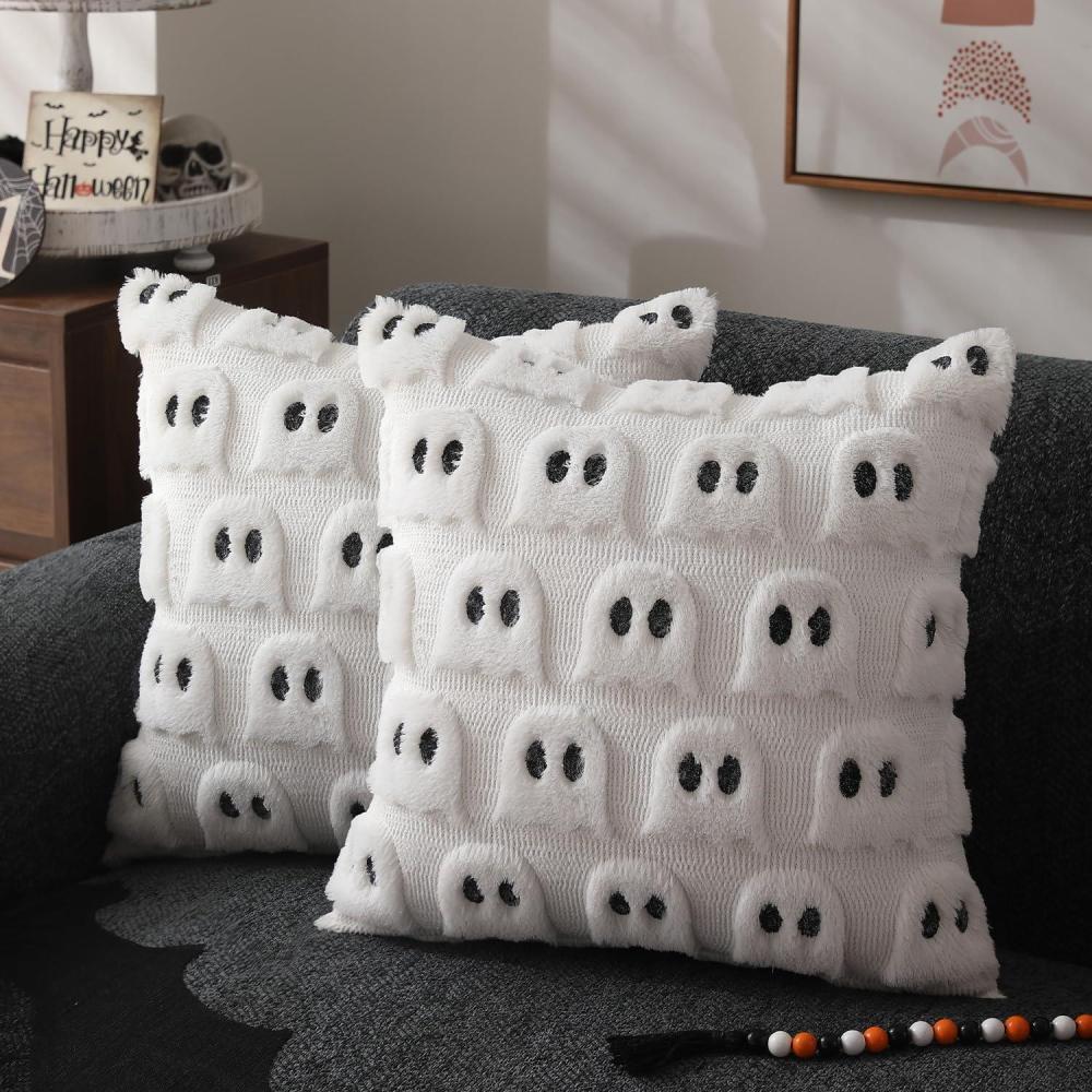imageDFXSZ Halloween Pillow Covers 16x16 inch Set of 2 Beige Skeletont Halloween Decorations Soft Plush Faux Fur Wool Couch Cushion Case for Chair Sofa Bedroom Living Room Home Decor PTK04C16White Ghost