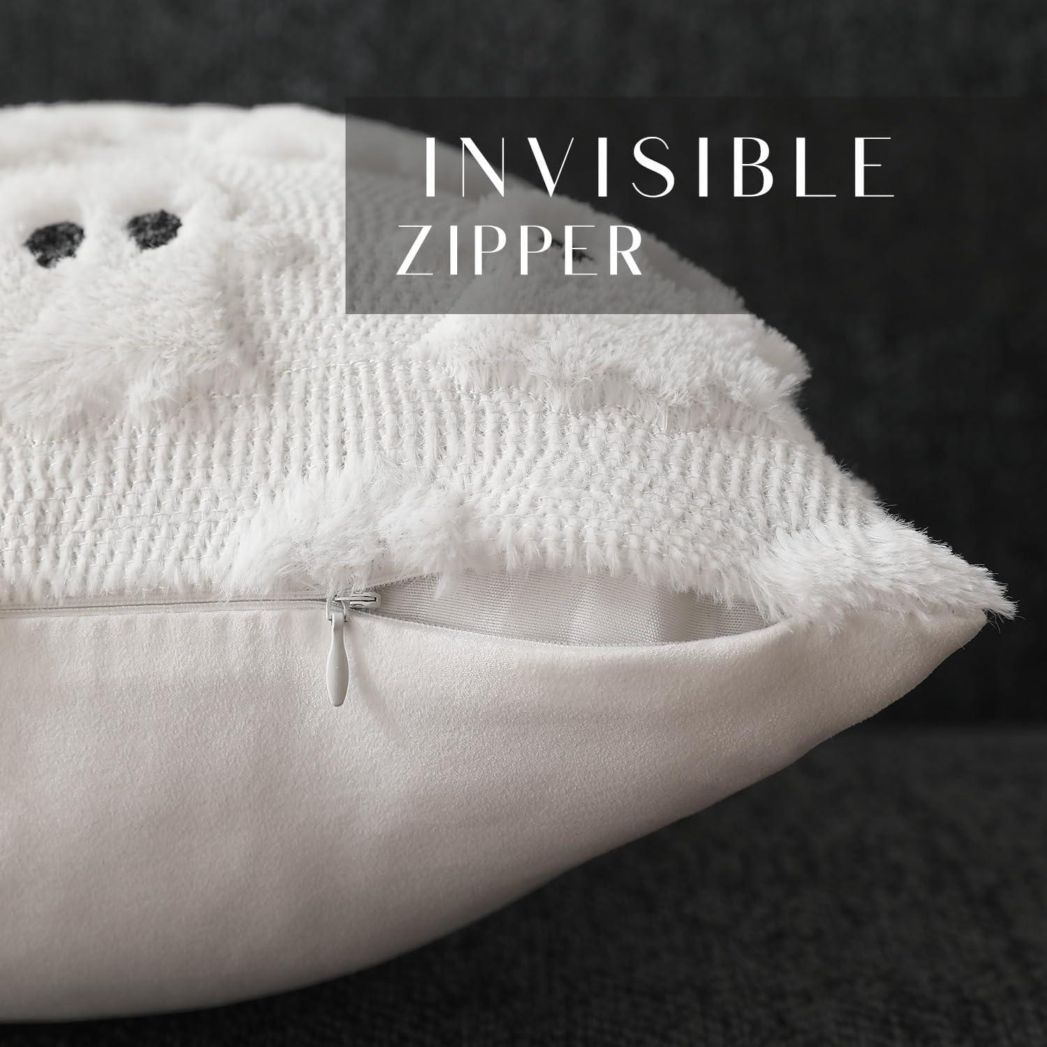 EASY TO PUT ON: Fold the full pillow core in half and stuff it into the pillowcase, then flatten the four corners and zip it up. Super easy.