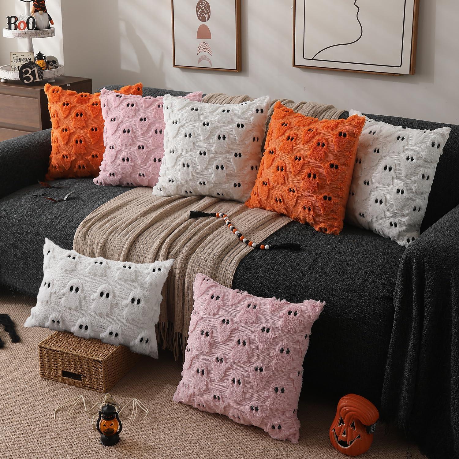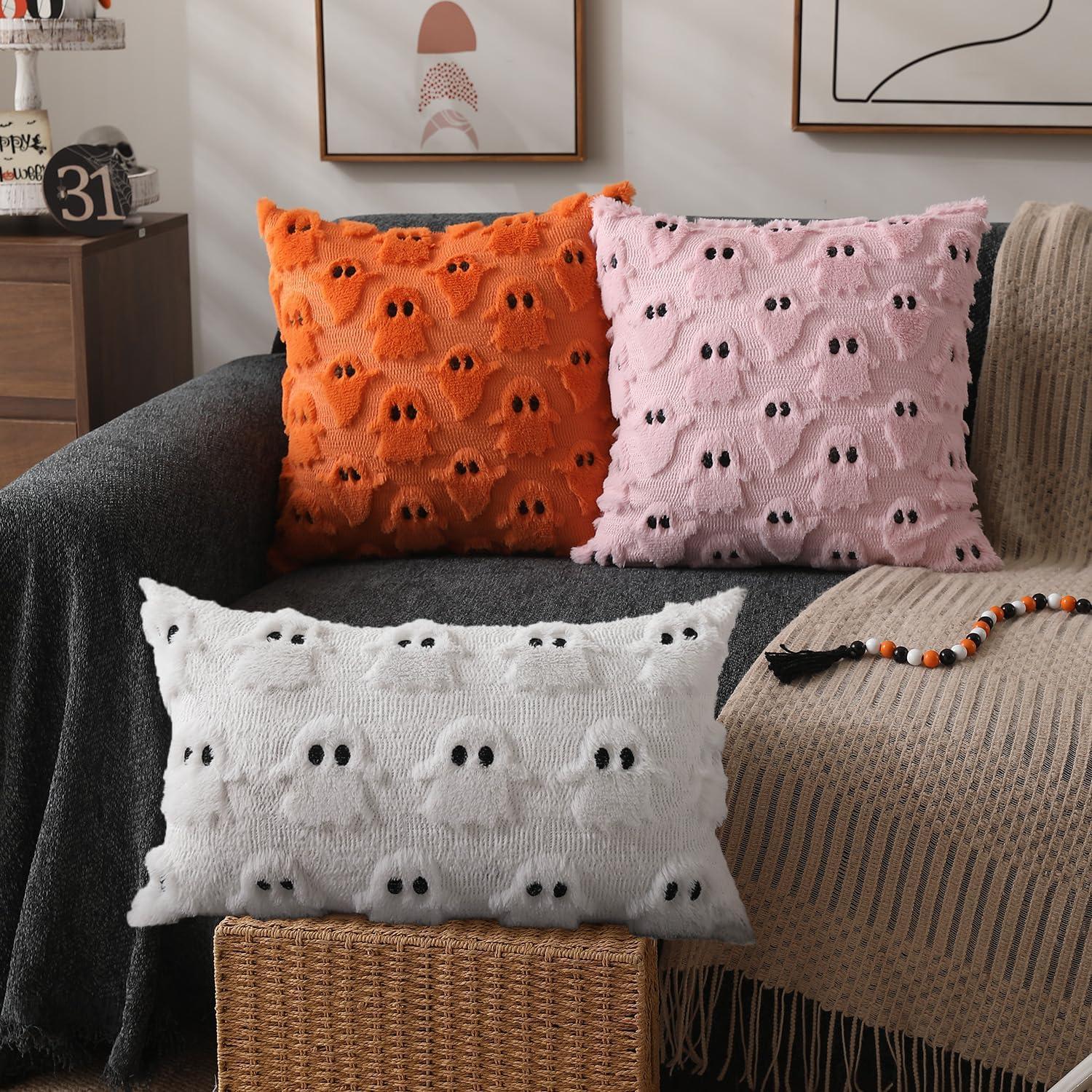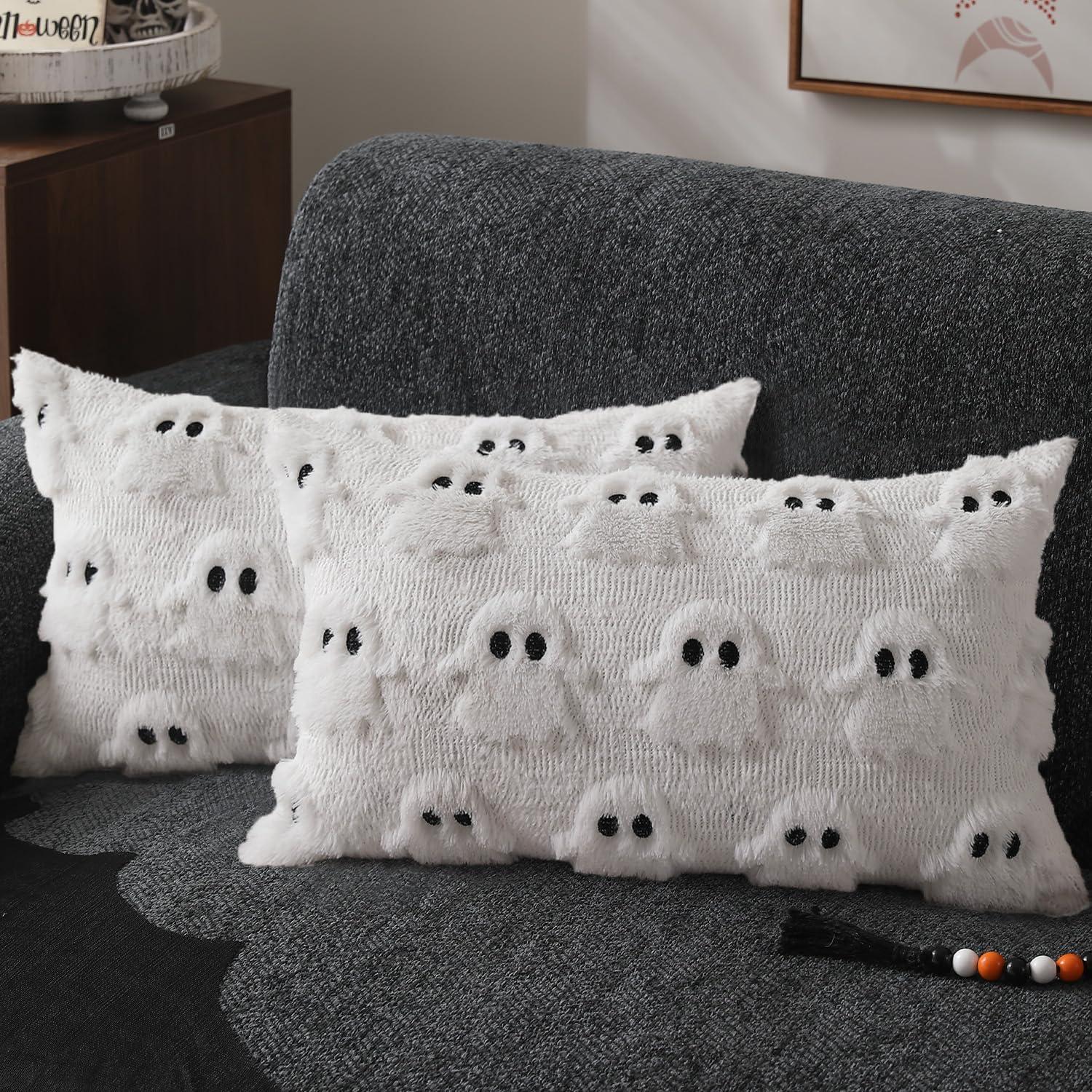imageDFXSZ Halloween Pillow Covers 16x16 inch Set of 2 Beige Skeletont Halloween Decorations Soft Plush Faux Fur Wool Couch Cushion Case for Chair Sofa Bedroom Living Room Home Decor PTK04C16White Ghost