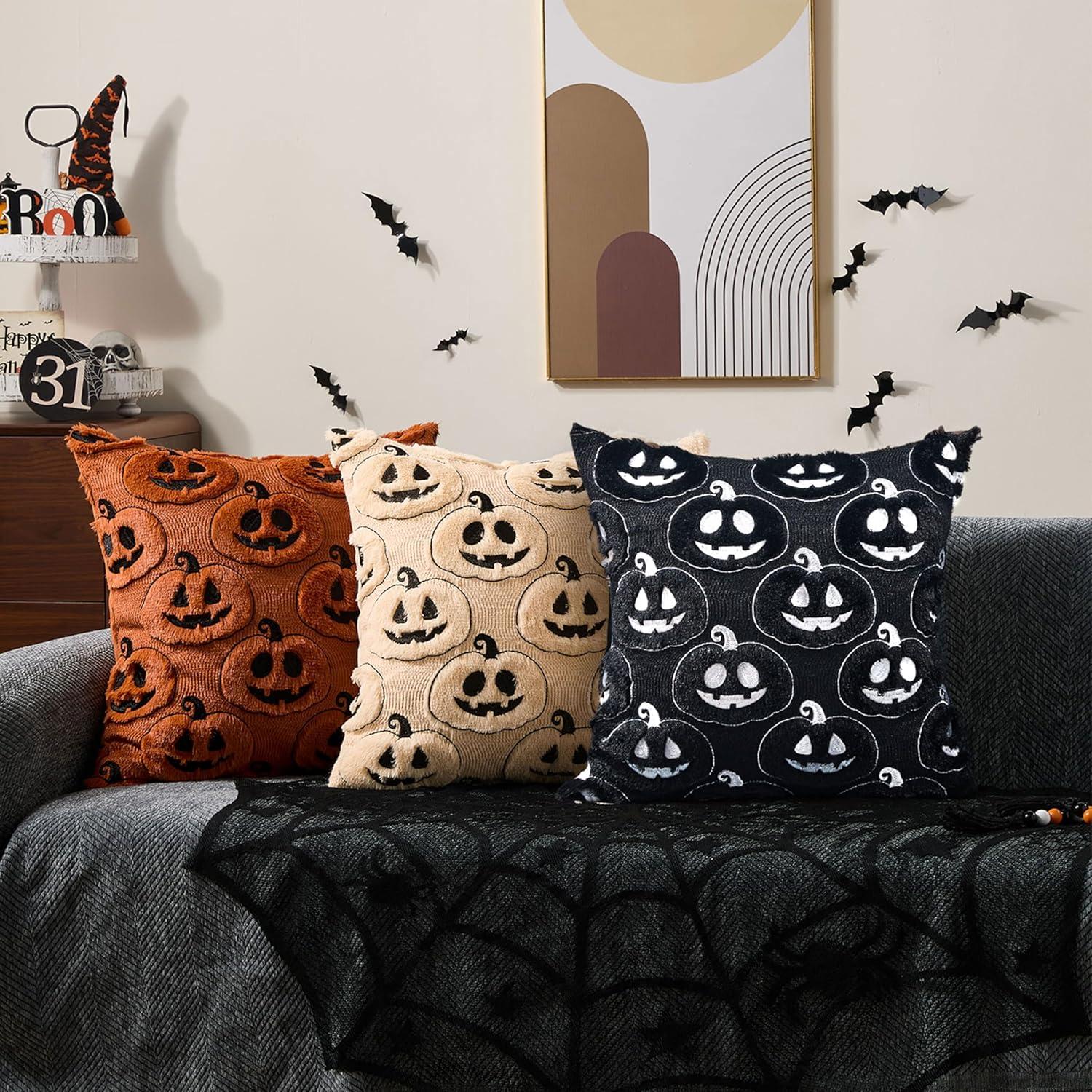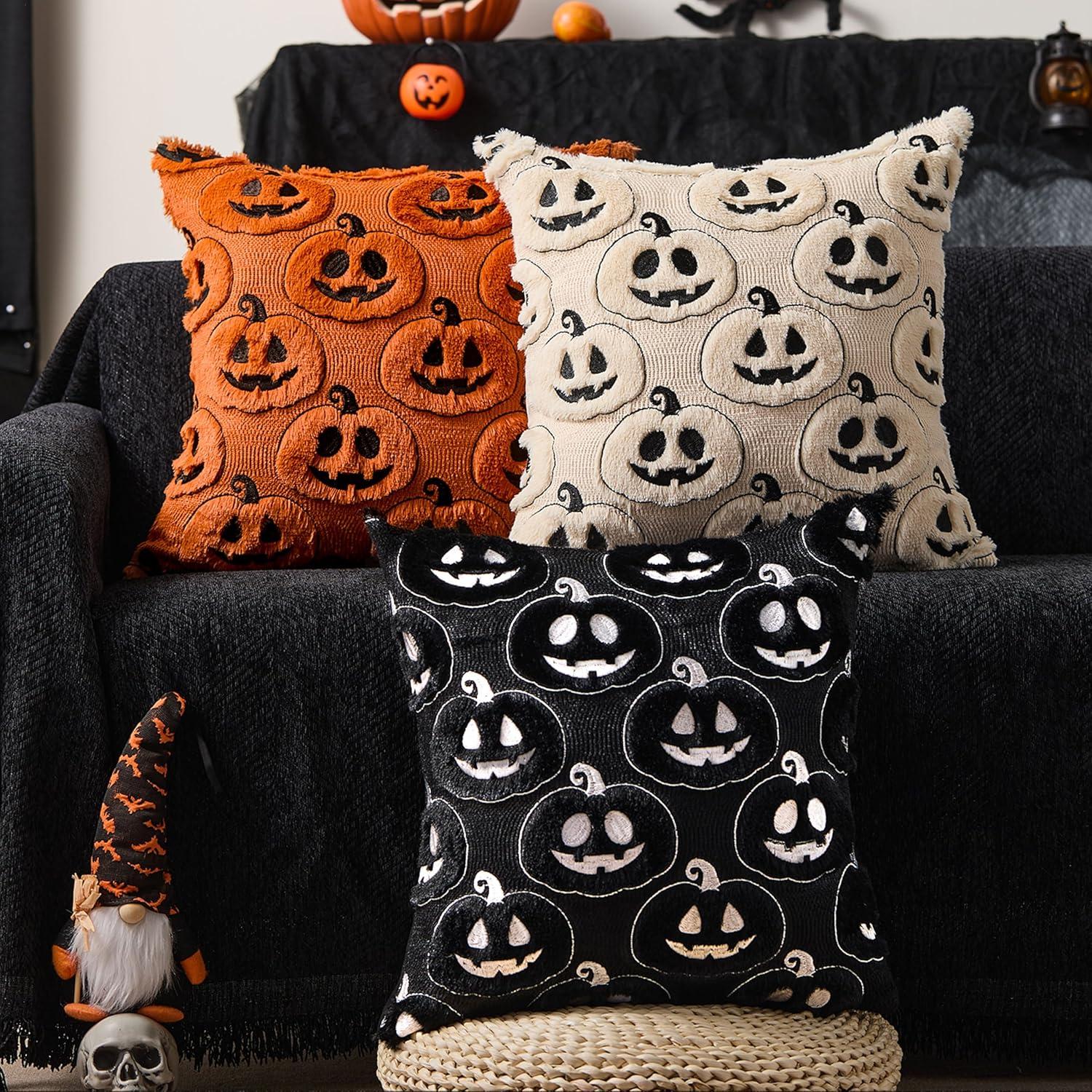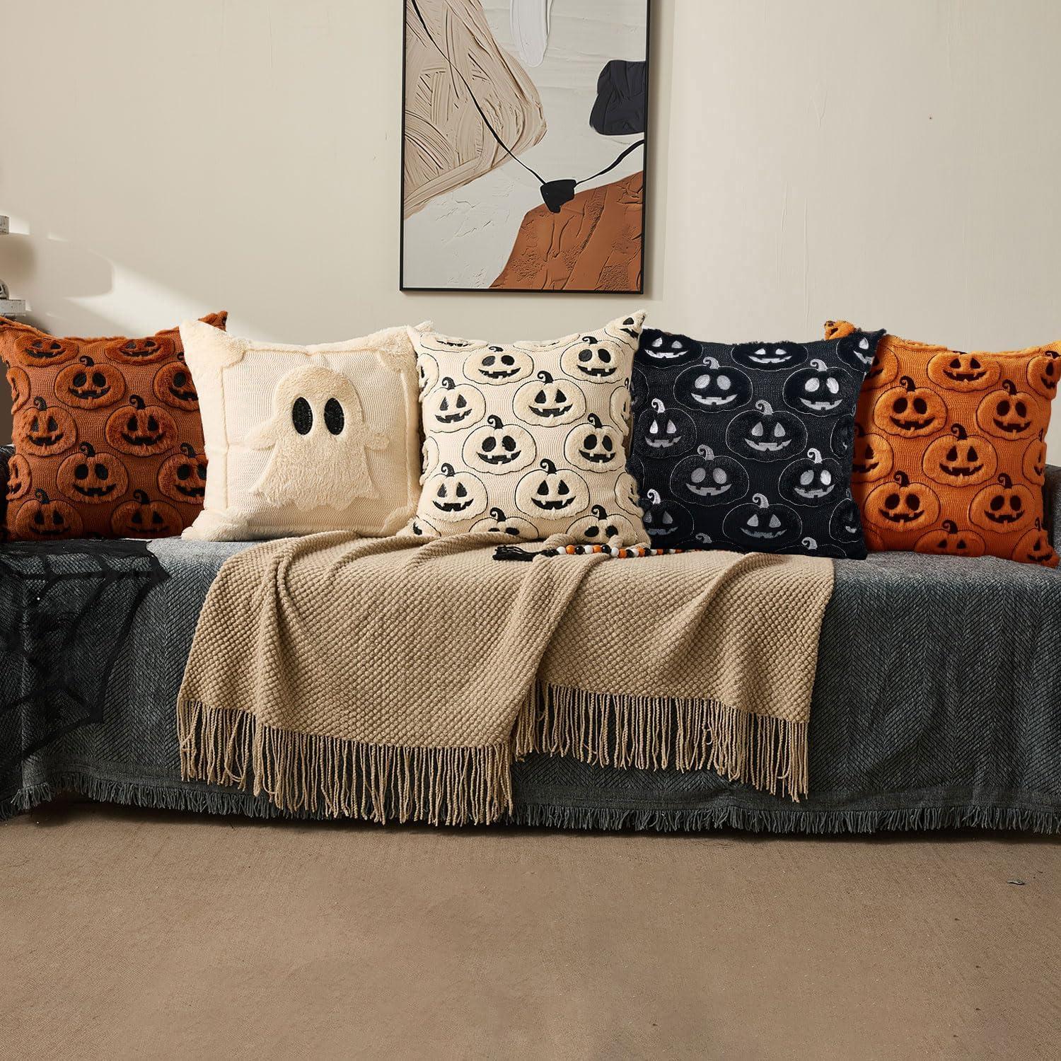 DFXSZ Halloween Pillow Covers 18×18 inch Set of 2 Black Eyes White Ghost Throw Pillow Cases Soft Plush Faux Fur Wool Couch Cushion Case for Chair Sofa Bedroom Living Room Home Decor PTK056A18(Blackrust Pumpkins)