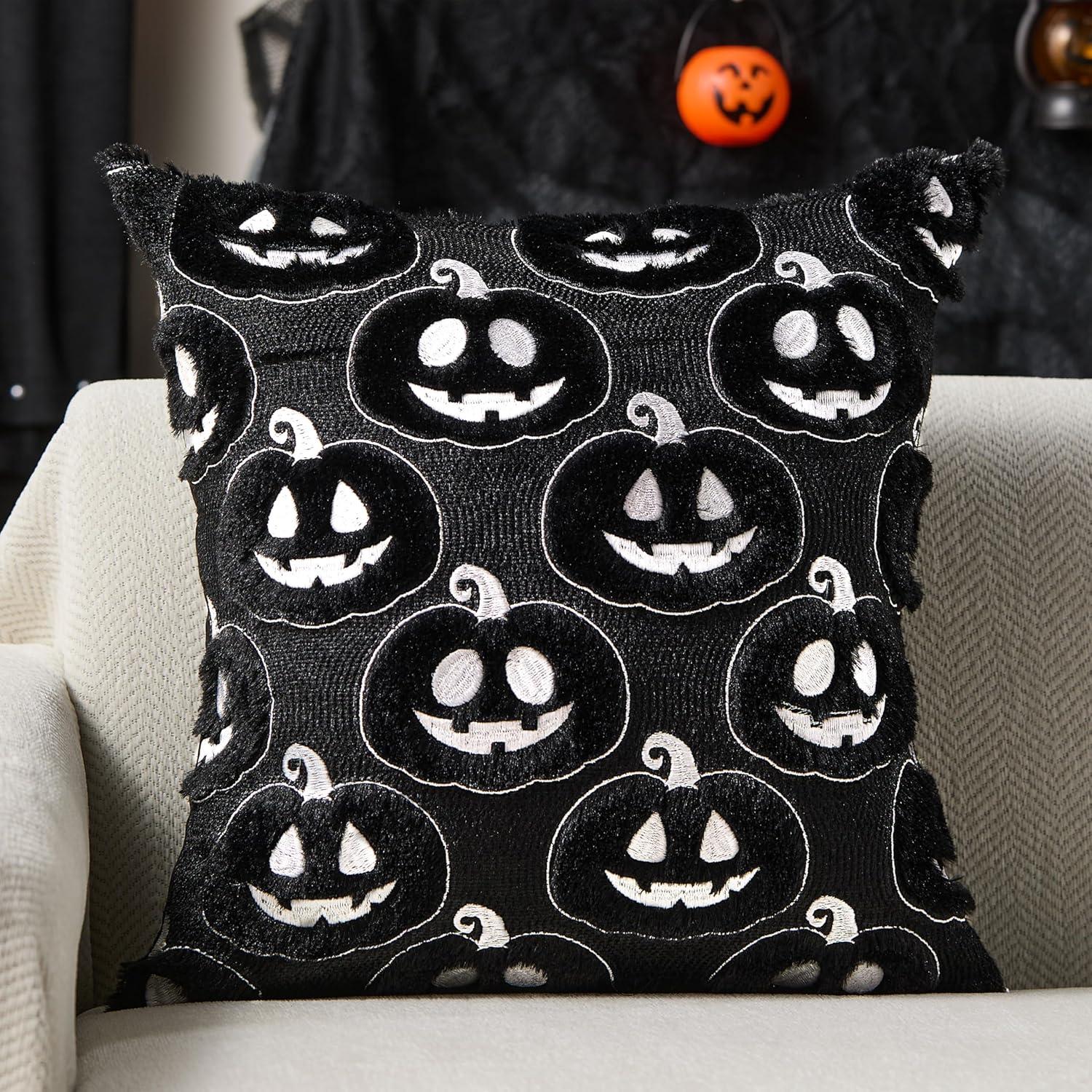 DFXSZ Halloween Pillow Covers 18x18 inch Set of 2 Black Eyes White Ghost Throw Pillow Cases Soft Plush Faux Fur Wool Couch Cushion Case for Chair Sofa Bedroom Living Room Home Decor PTK056A18(Blackwhite Pumpkins)