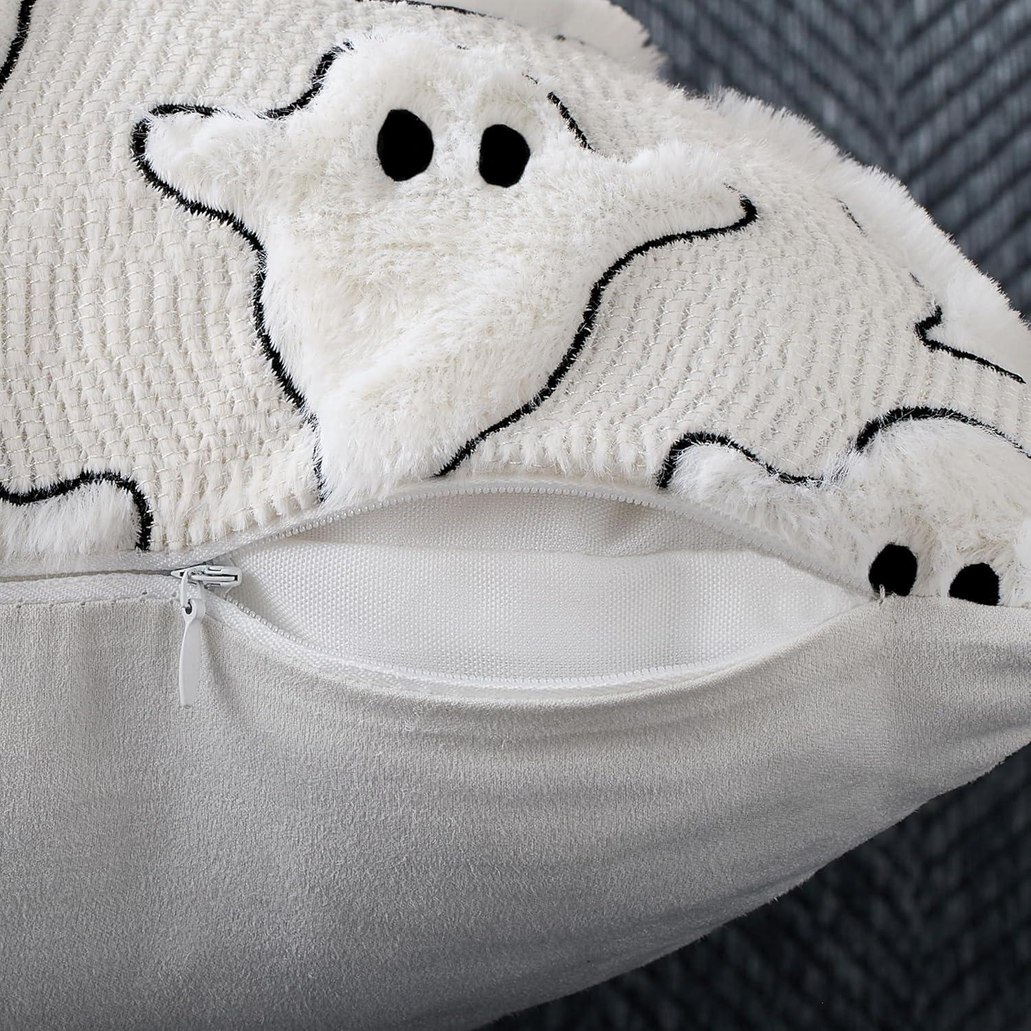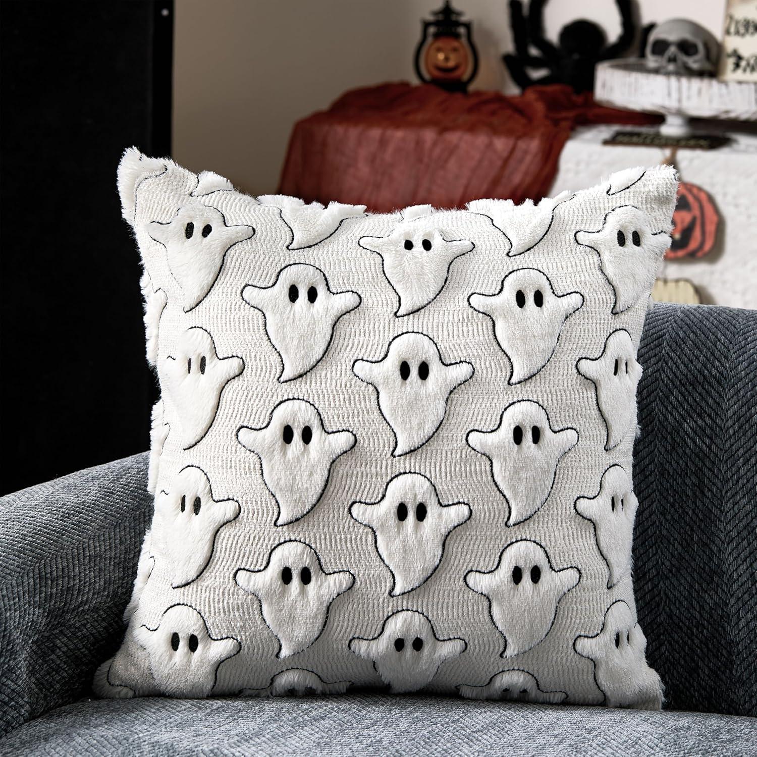 DFXSZ Halloween Pillow Covers 18x18 inch Set of 2 Black Eyes White Ghost Throw Pillow Cases Soft Plush Faux Fur Wool Couch Cushion Case for Chair Sofa Bedroom Living Room Home Decor PTK056A18(White)