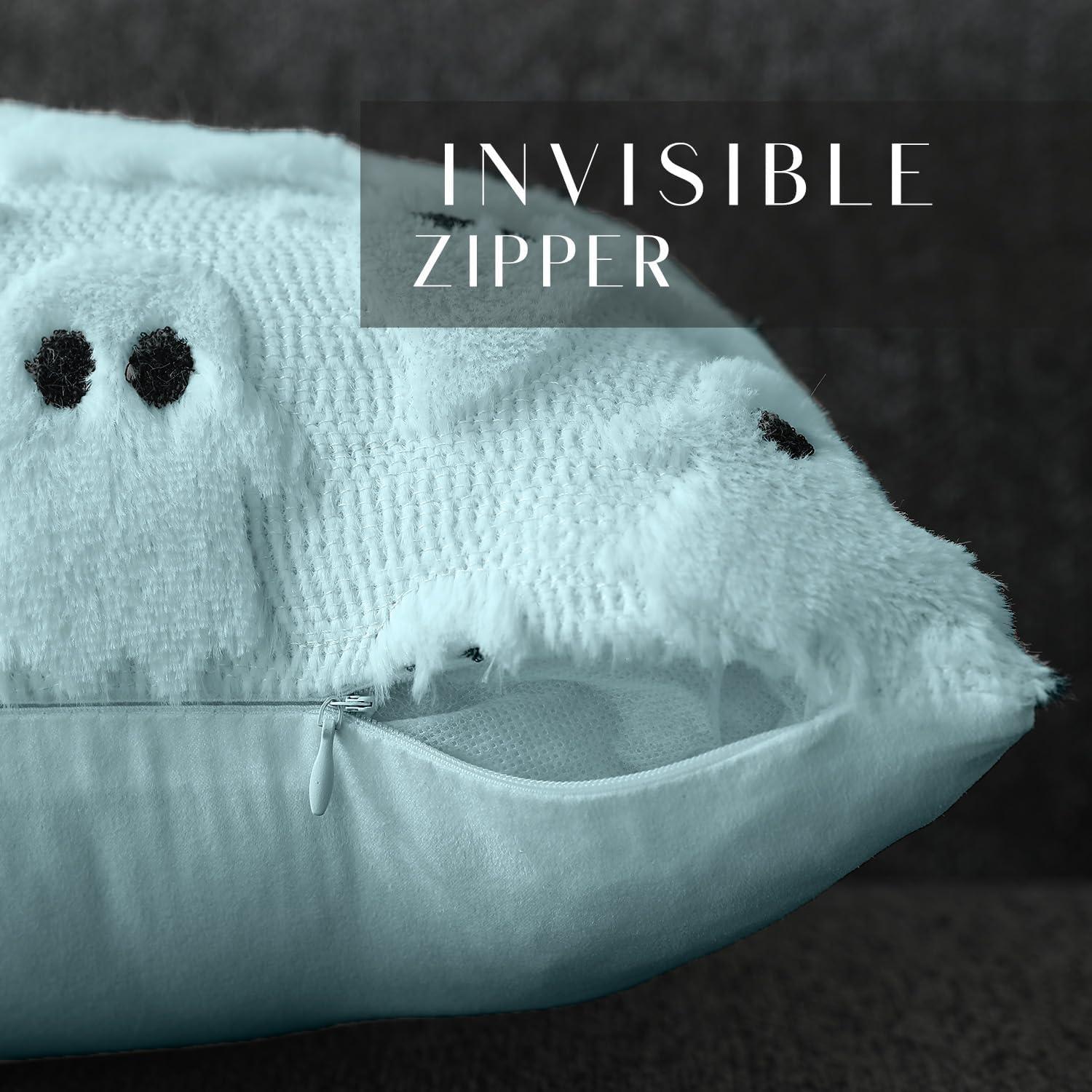 imageDFXSZ Halloween Pillow Covers 18x18 inch Set of 2 Black Ghost Throw Pillow Cases Soft Plush Faux Fur Wool Couch Cushion Case for Chair Sofa Bedroom Living Room Home Decor PTK03F18Blue