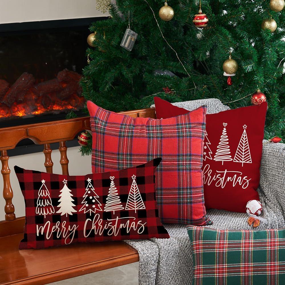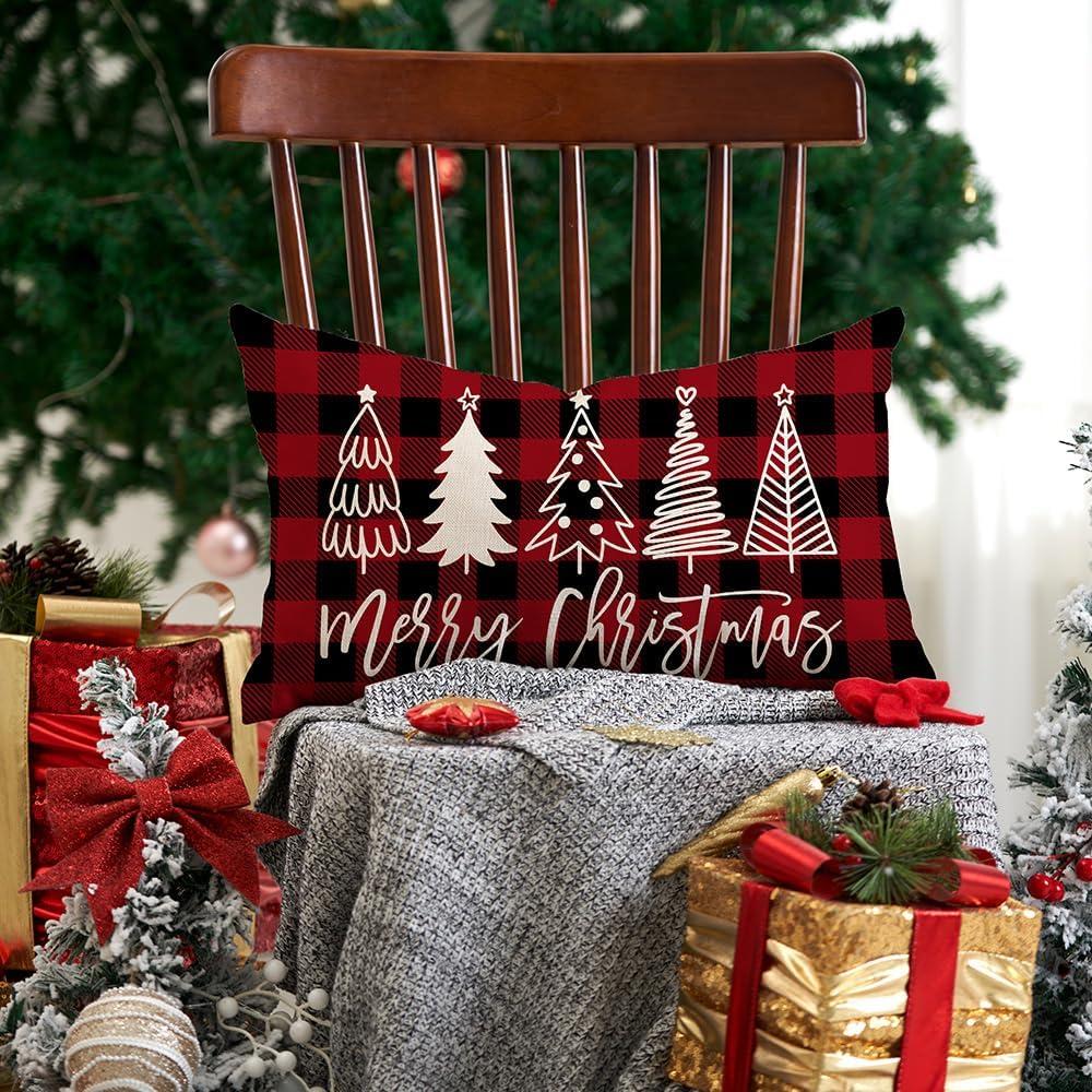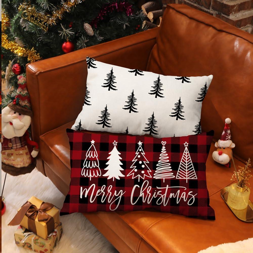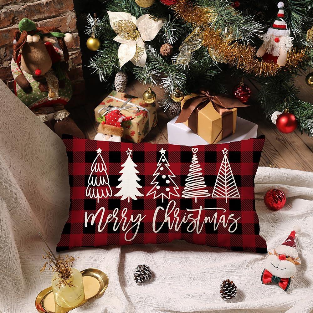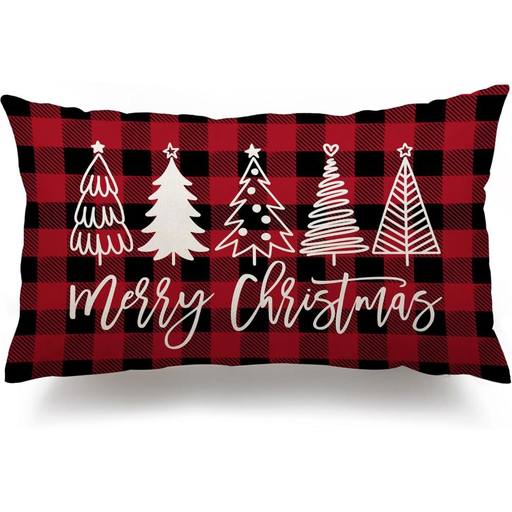 DFXSZ Merry Christmas Pillow Cover 12x20 Farmhouse Christmas Throw Lumbar Pillow Cover Decorations Christmas Tree Holiday Decor Case for Home Couch(Red Black)