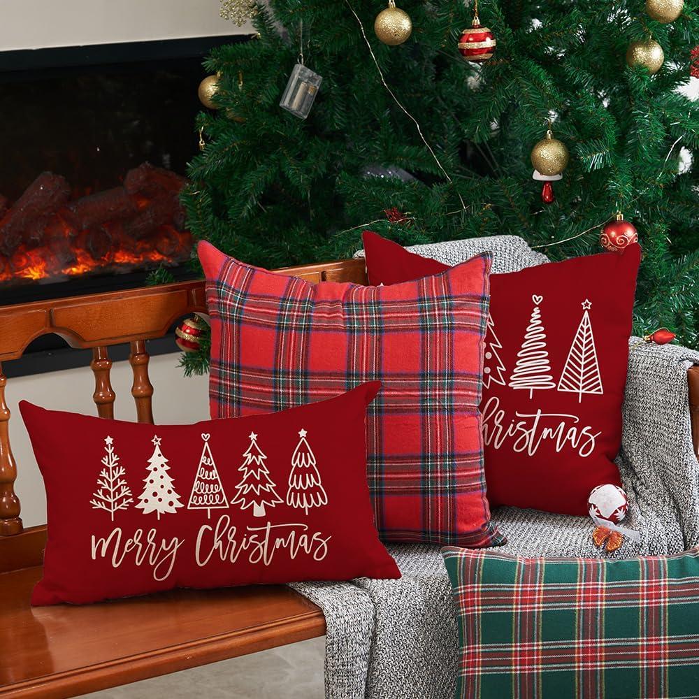 DFXSZ Merry Christmas Pillow Cover 12×20 Farmhouse Christmas Throw Lumbar Pillow Cover Decorations Christmas Tree Holiday Decor Case for Home Couch(Red Black)
