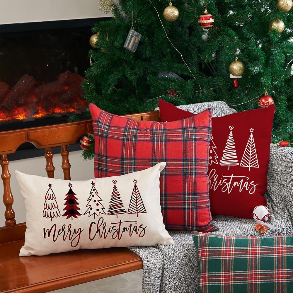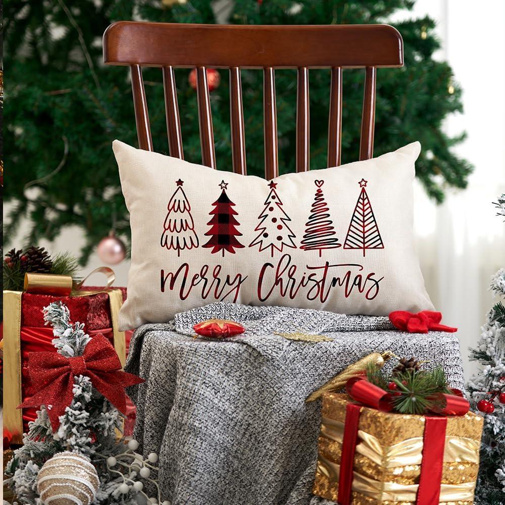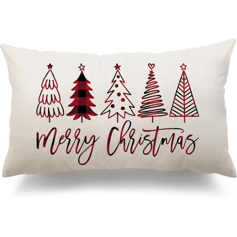 imageDFXSZ Merry Christmas Pillow Cover 12x20 Farmhouse Christmas Throw Lumbar Pillow Cover Decorations Christmas Tree Holiday Decor Case for Home CouchRed2