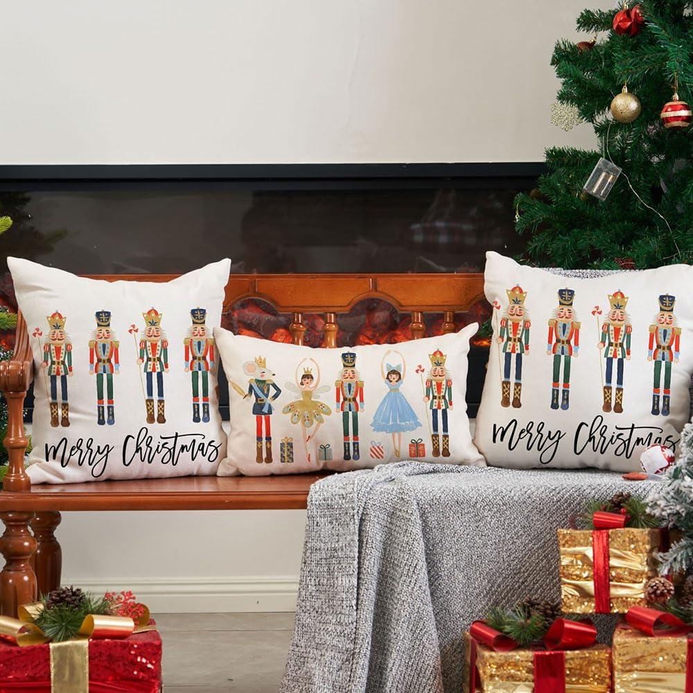 DFXSZ Merry Christmas Throw Pillow Cover 12x20 Inch Nutcracker Christmas Decor Winter Holiday Party Cushion Case Decoration for Sofa Couch YK-141B12(A3)